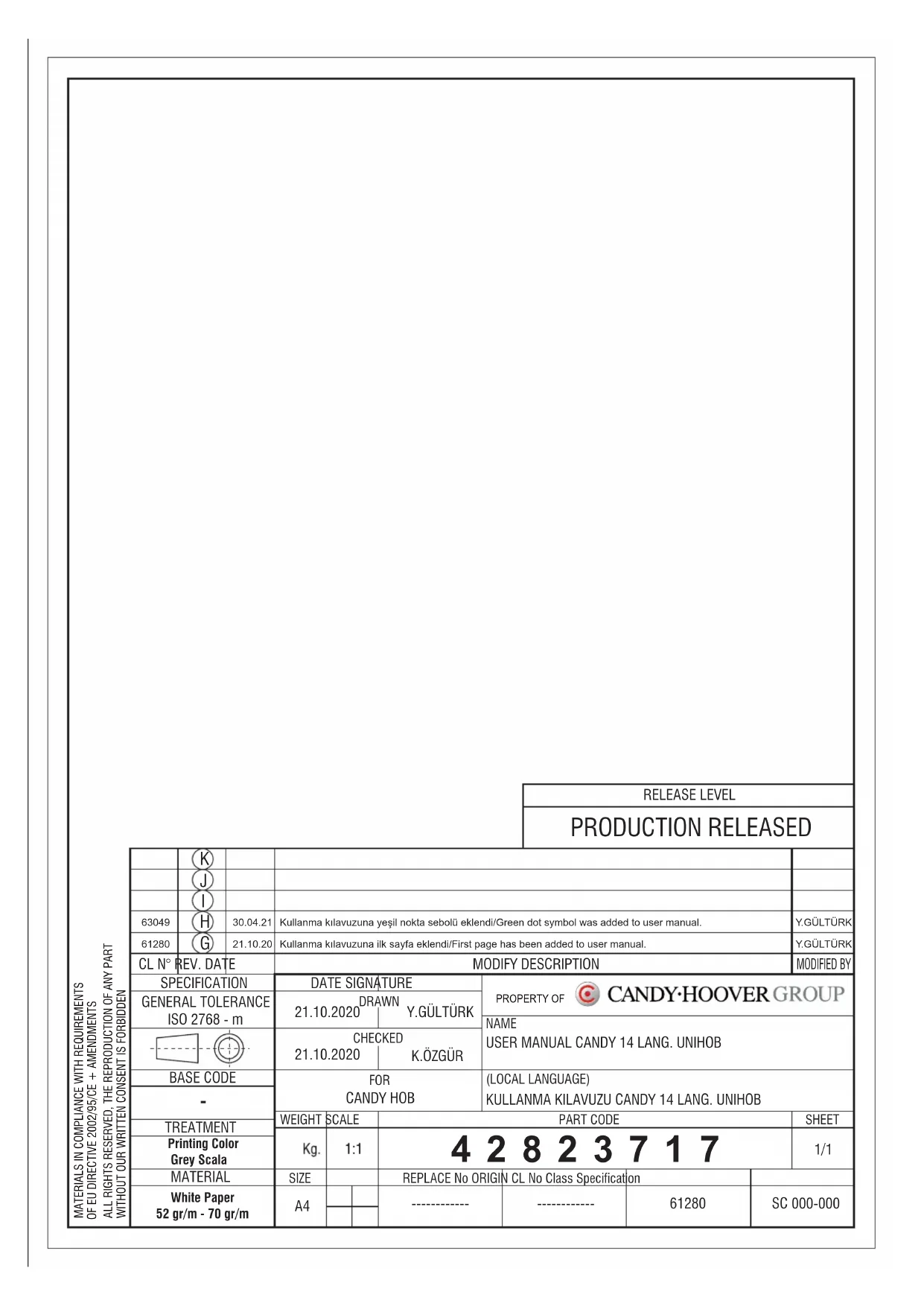 Retrouvez gratuitement la notice de l'appareil CHW7AV4WGT CANDY au format PDF.