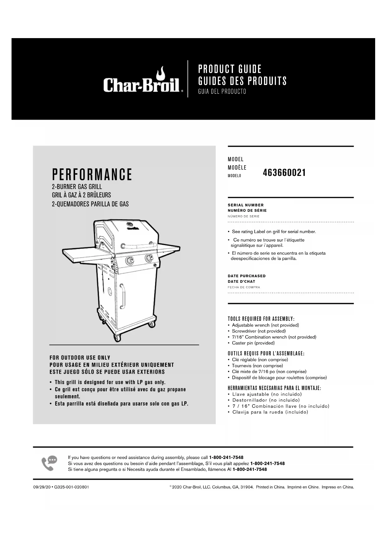 Retrouvez gratuitement la notice de l'appareil 463660021 CHAR-BROIL au format PDF.