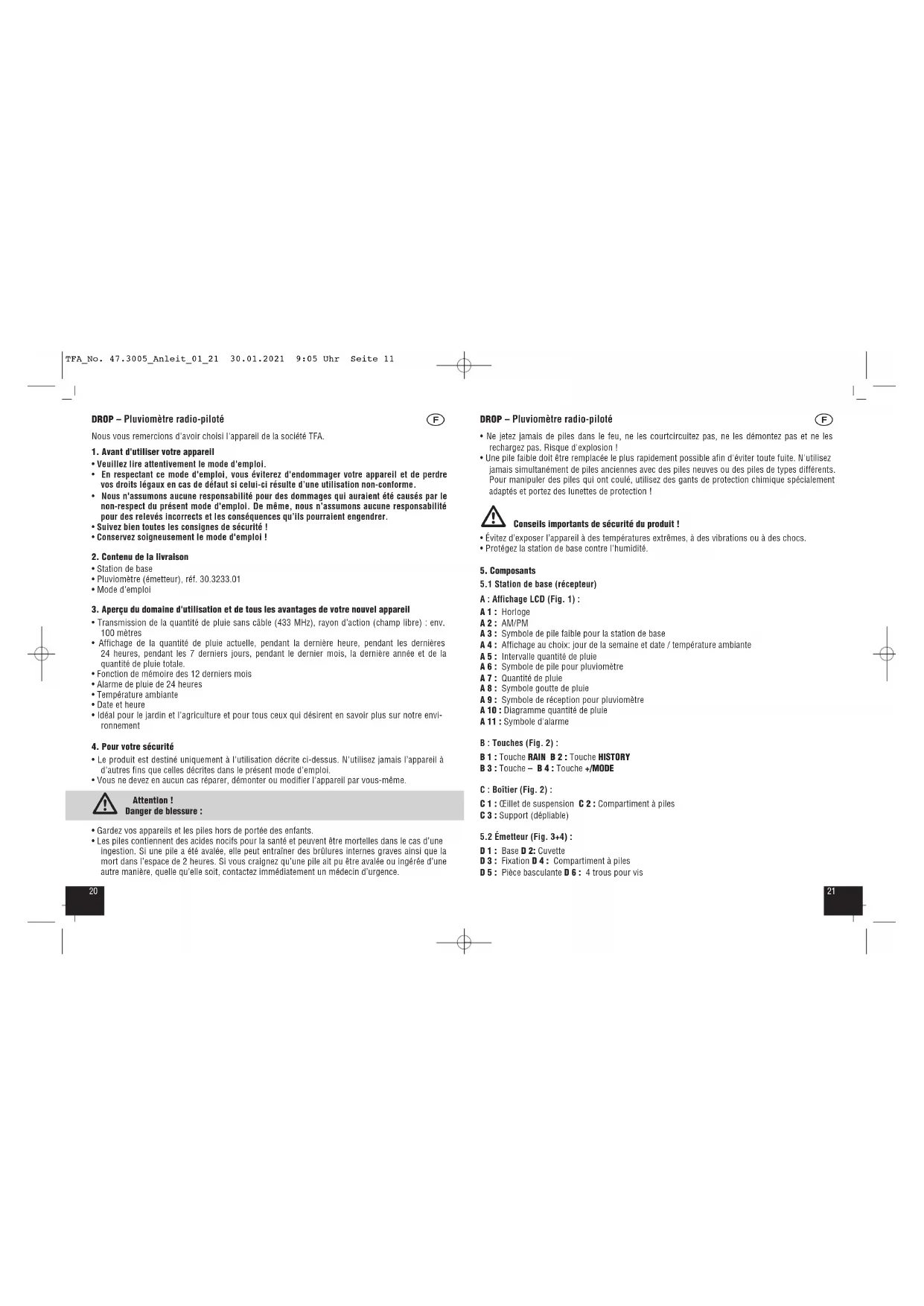 MODE D'EMPLOI Drop 47.3005.01 TFA