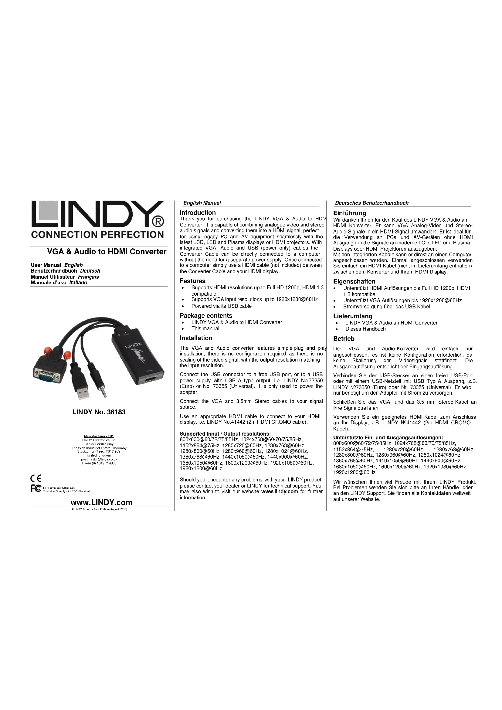 Retrouvez gratuitement la notice de l'appareil 38183 Lindy au format PDF.