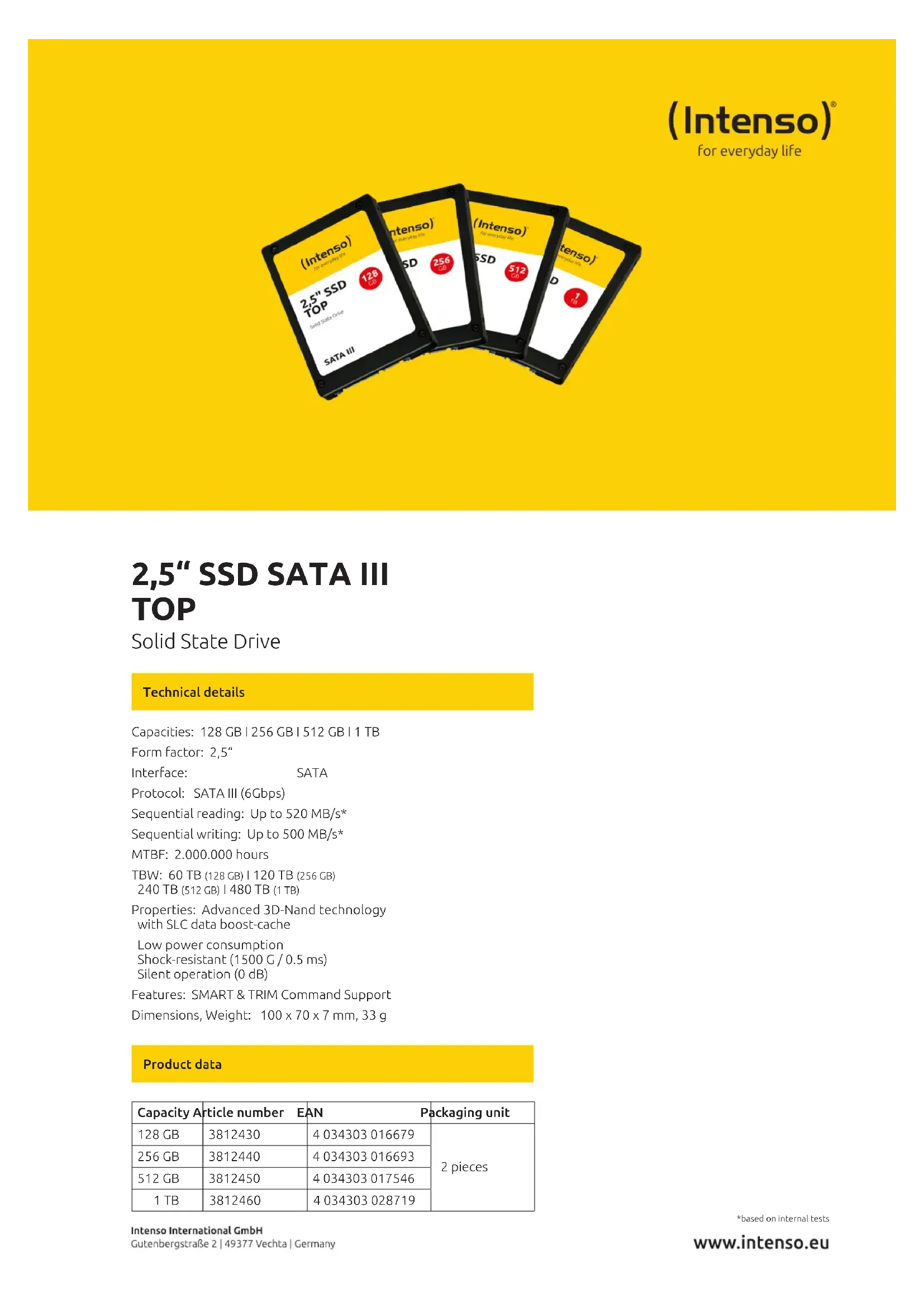 2 5" SSD SATA III Top - Disque dur INTENSO - Notice d'utilisation et mode d'emploi gratuit