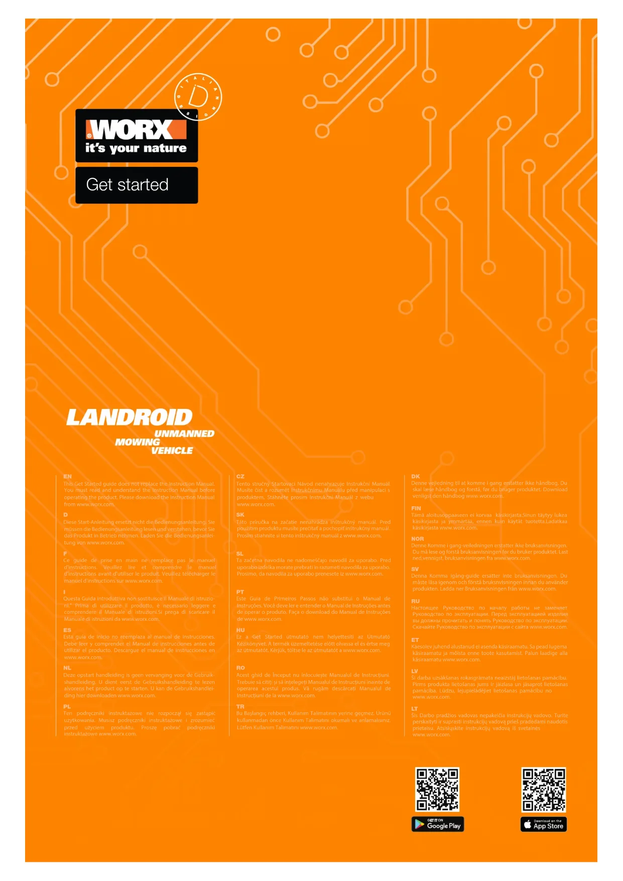 Ce guide de prise en main ne remplace pas le manuel d'instructions. Veuillez lire et comprendre le manuel d'instructions avant d'utiliser le produit. Veuillez télécharger le manuel d'instructions sur www.worx.com.