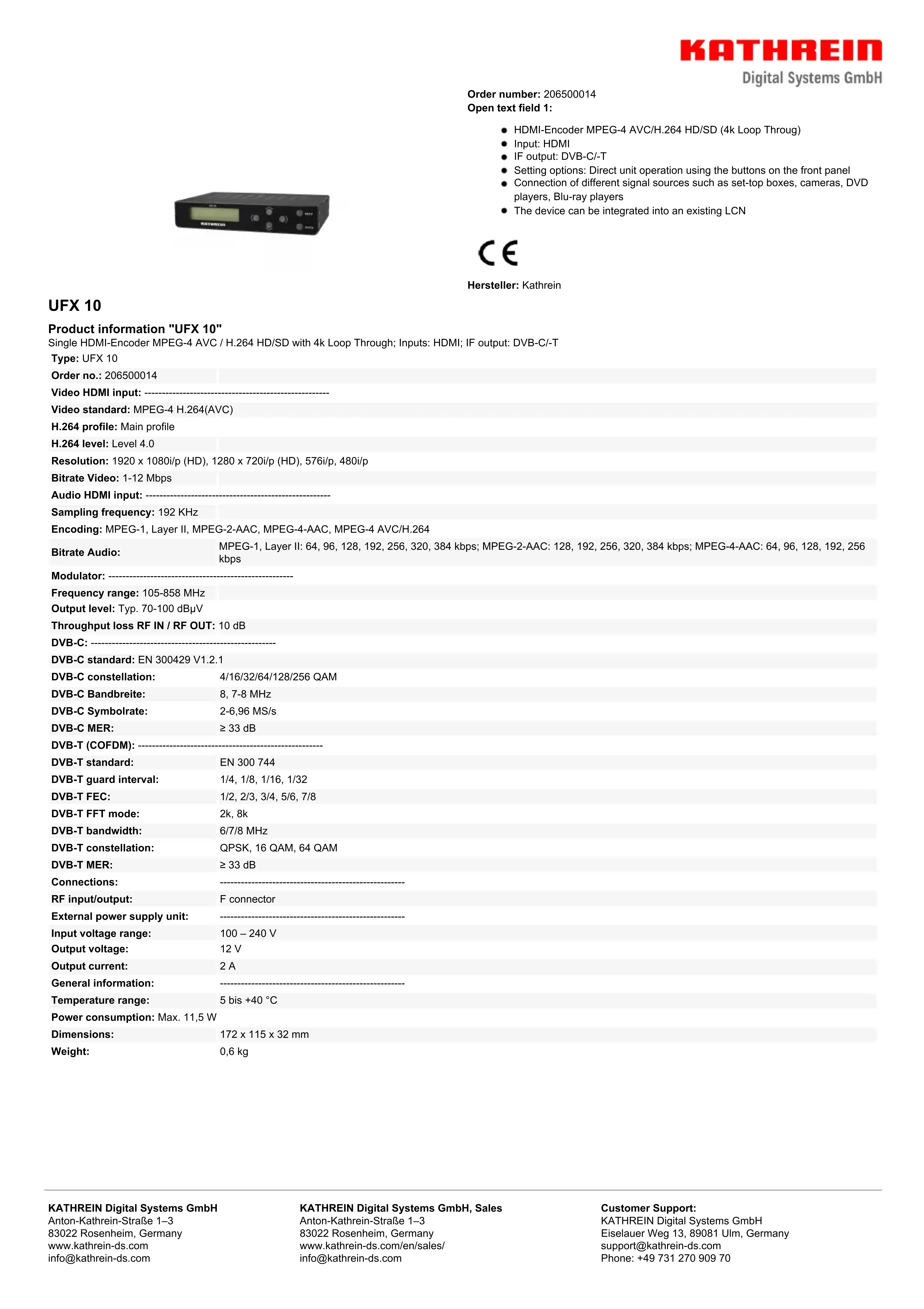 UFX 10 - Convertisseur audio/vidéo KATHREIN - Notice d'utilisation et mode d'emploi gratuit