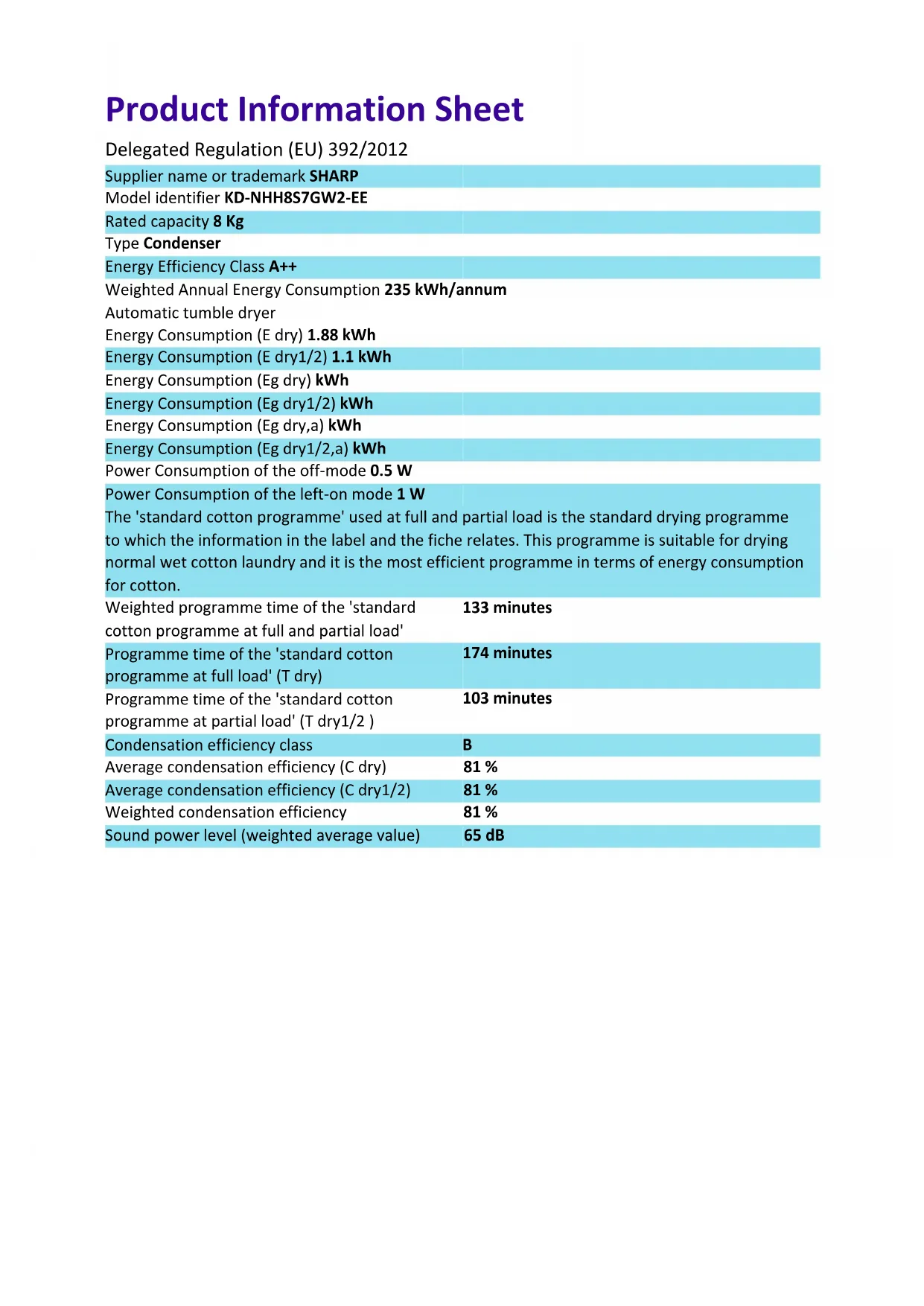 KDNHH8S7GW2EE - Seche linge SHARP - Notice d'utilisation et mode d'emploi gratuit