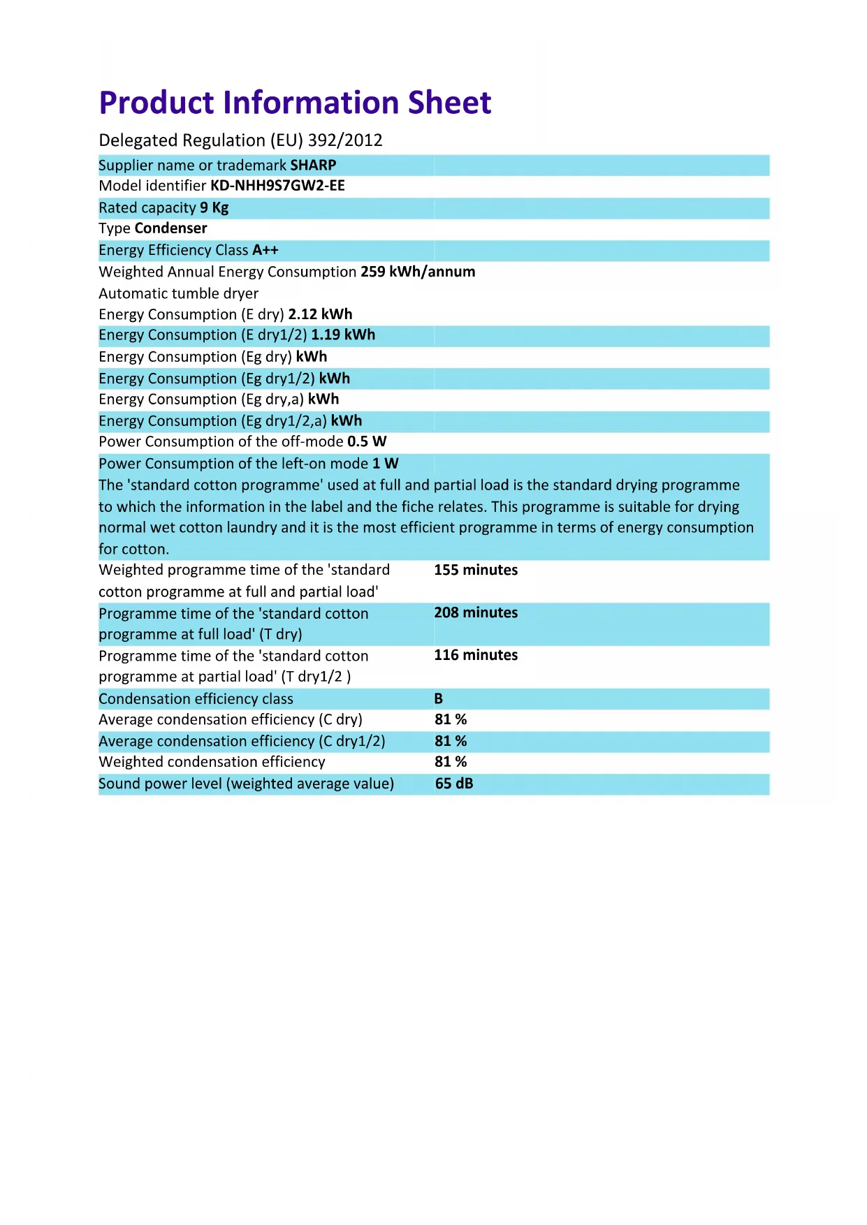 KDNHH9S7GW2EE - Seche linge SHARP - Notice d'utilisation et mode d'emploi gratuit