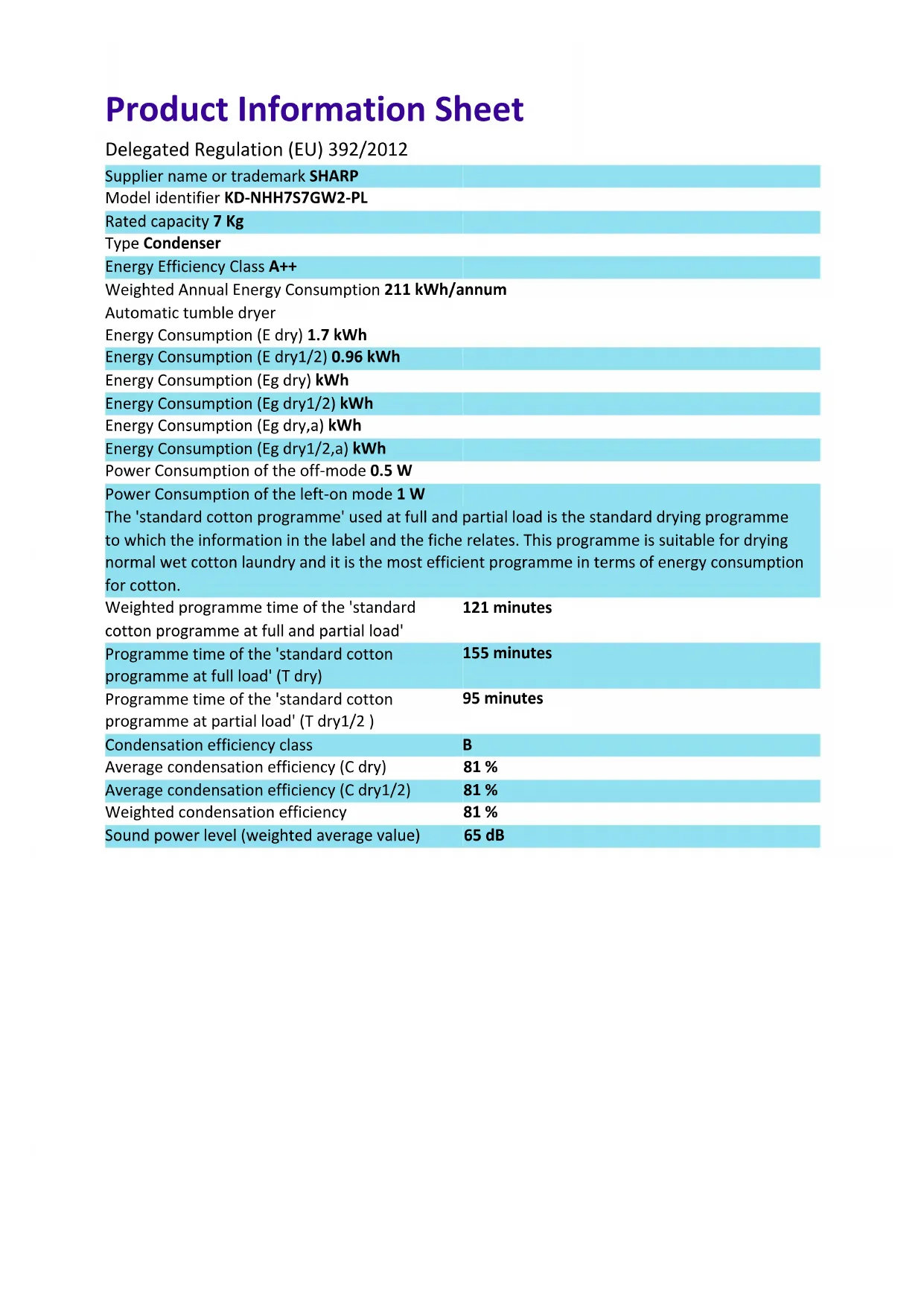 KDNHH7S7GW2PL - Seche linge SHARP - Notice d'utilisation et mode d'emploi gratuit