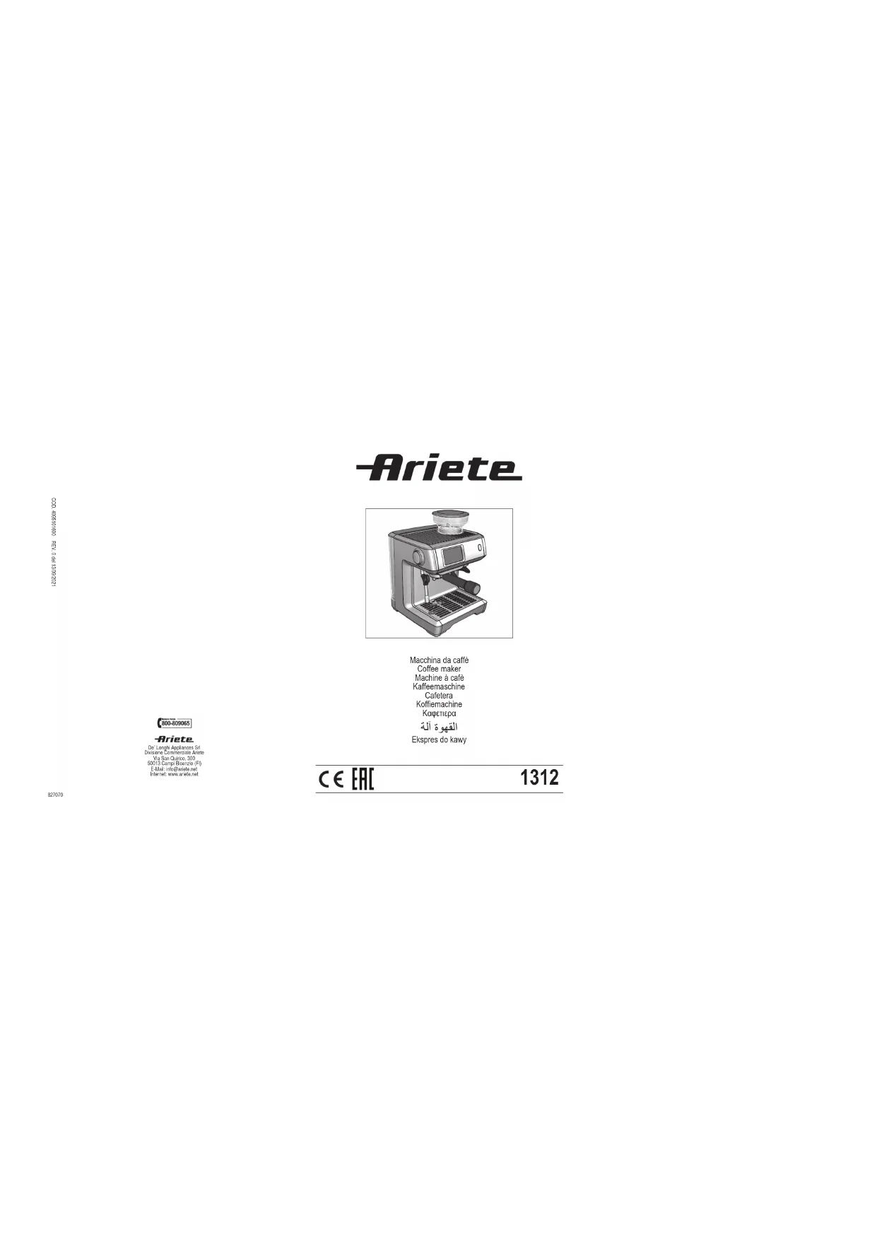 1312 - Machine à café ARIETE - Notice d'utilisation et mode d'emploi gratuit