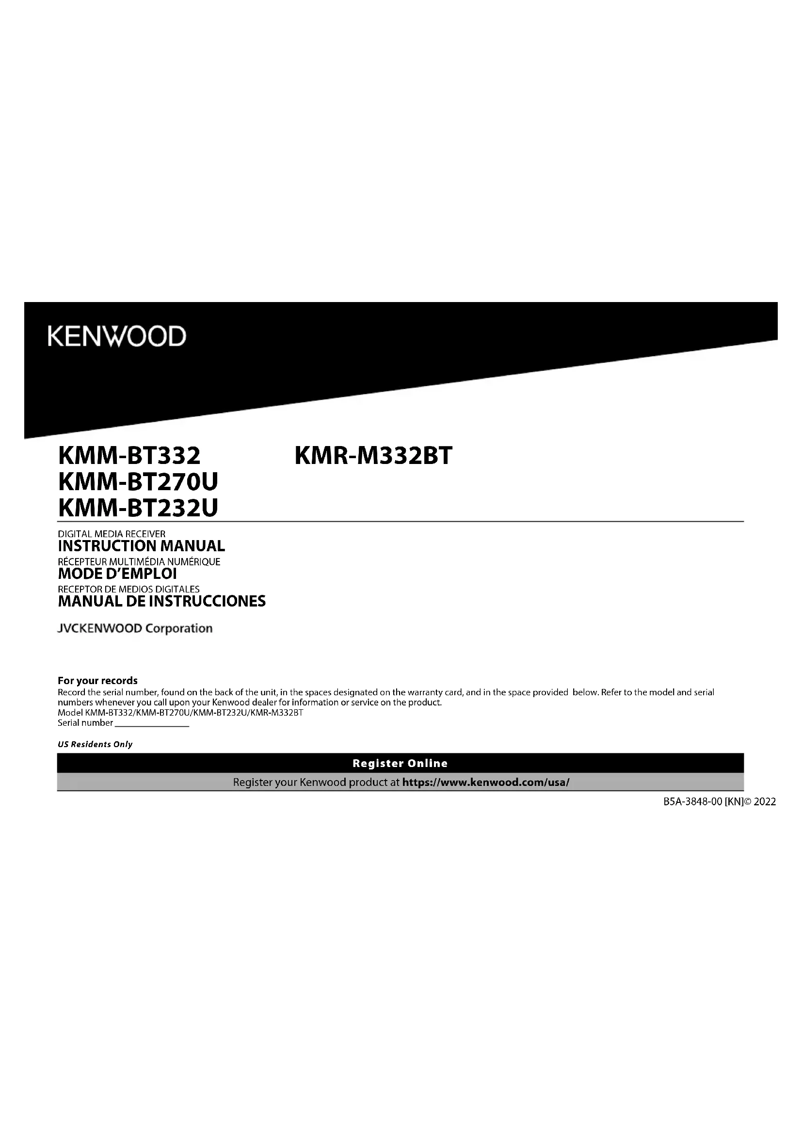 Retrouvez gratuitement la notice de l'appareil KMRM332BT KENWOOD au format PDF.
