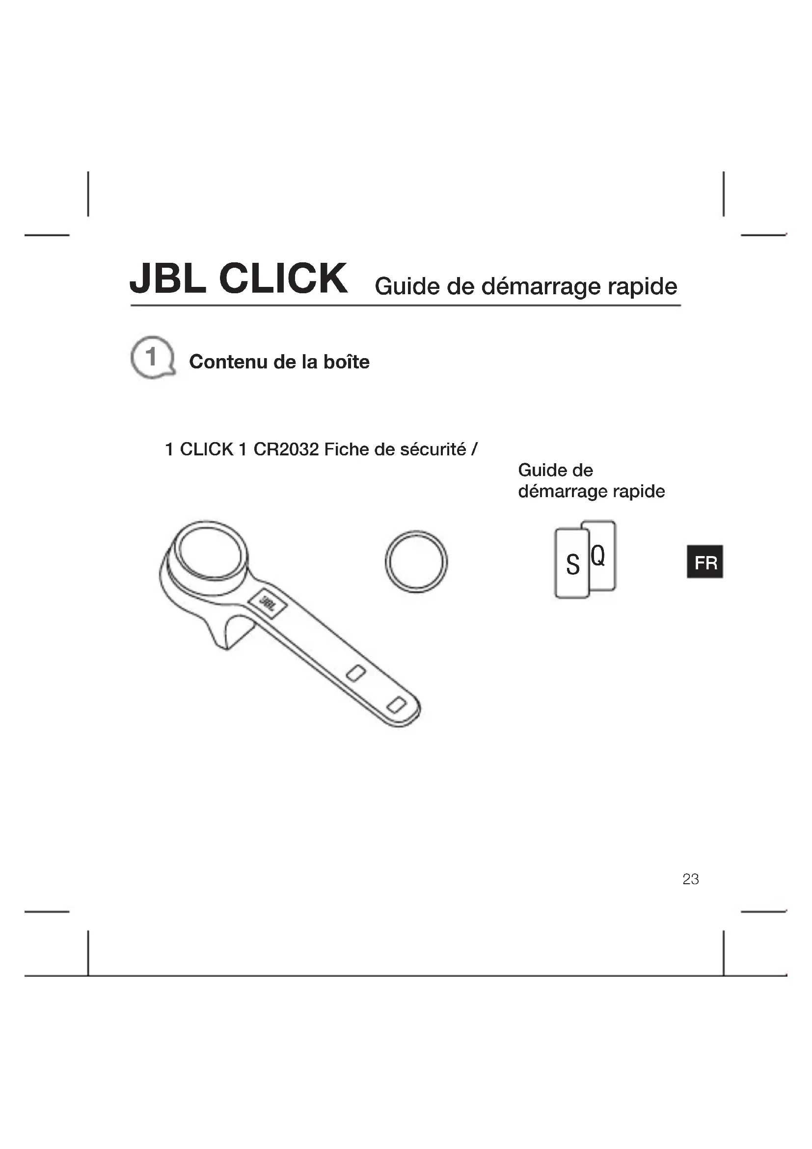1 CLICK 1 CR2032 Fiche de sécurité /Guide de démarrage rapideJBL CLICK Guide de démarrage rapide
