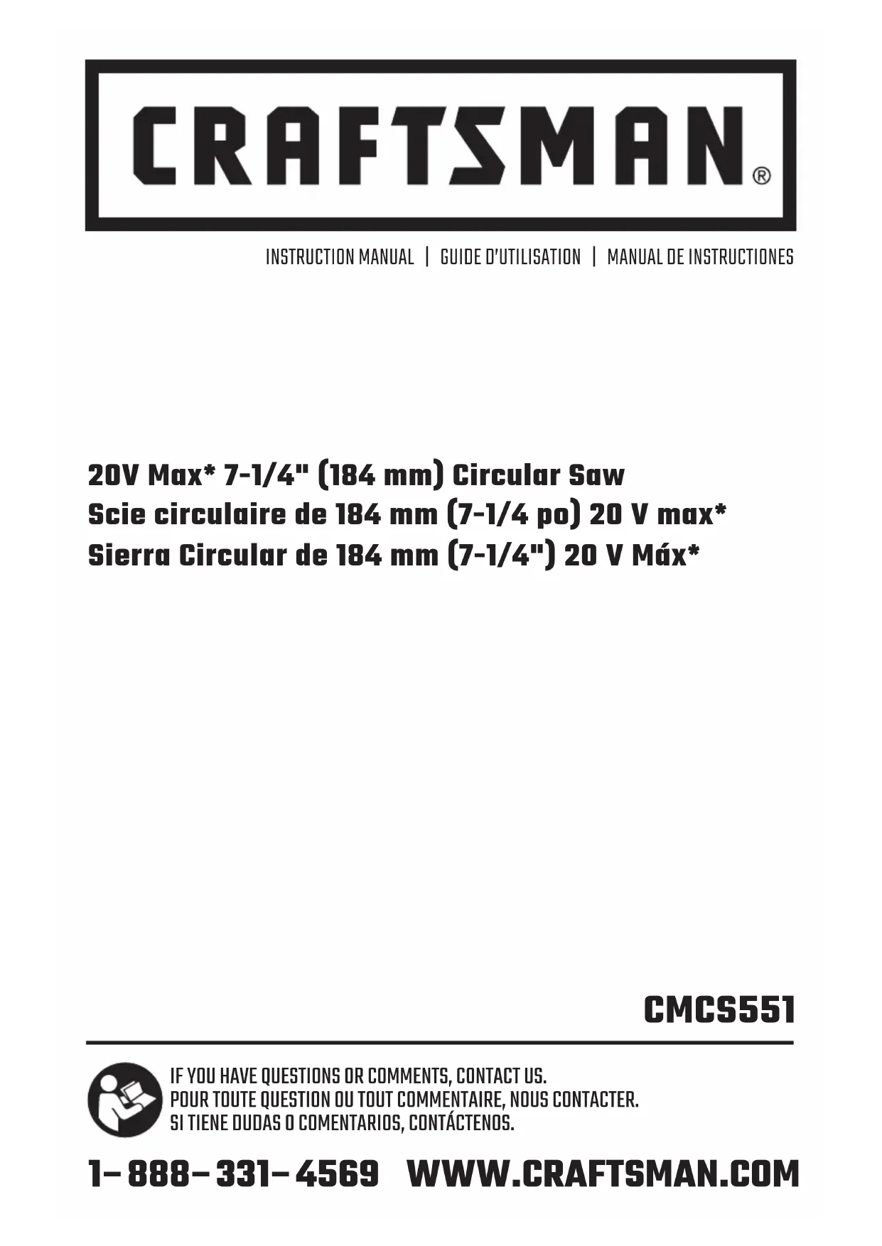 blessures, lire le mode d’emploi del’outil. Pour toute question ou remarque au sujet de cet outil ou de tout autre outil CRAFTSMAN composez le numéro sans frais : 1-888-331-4569.
