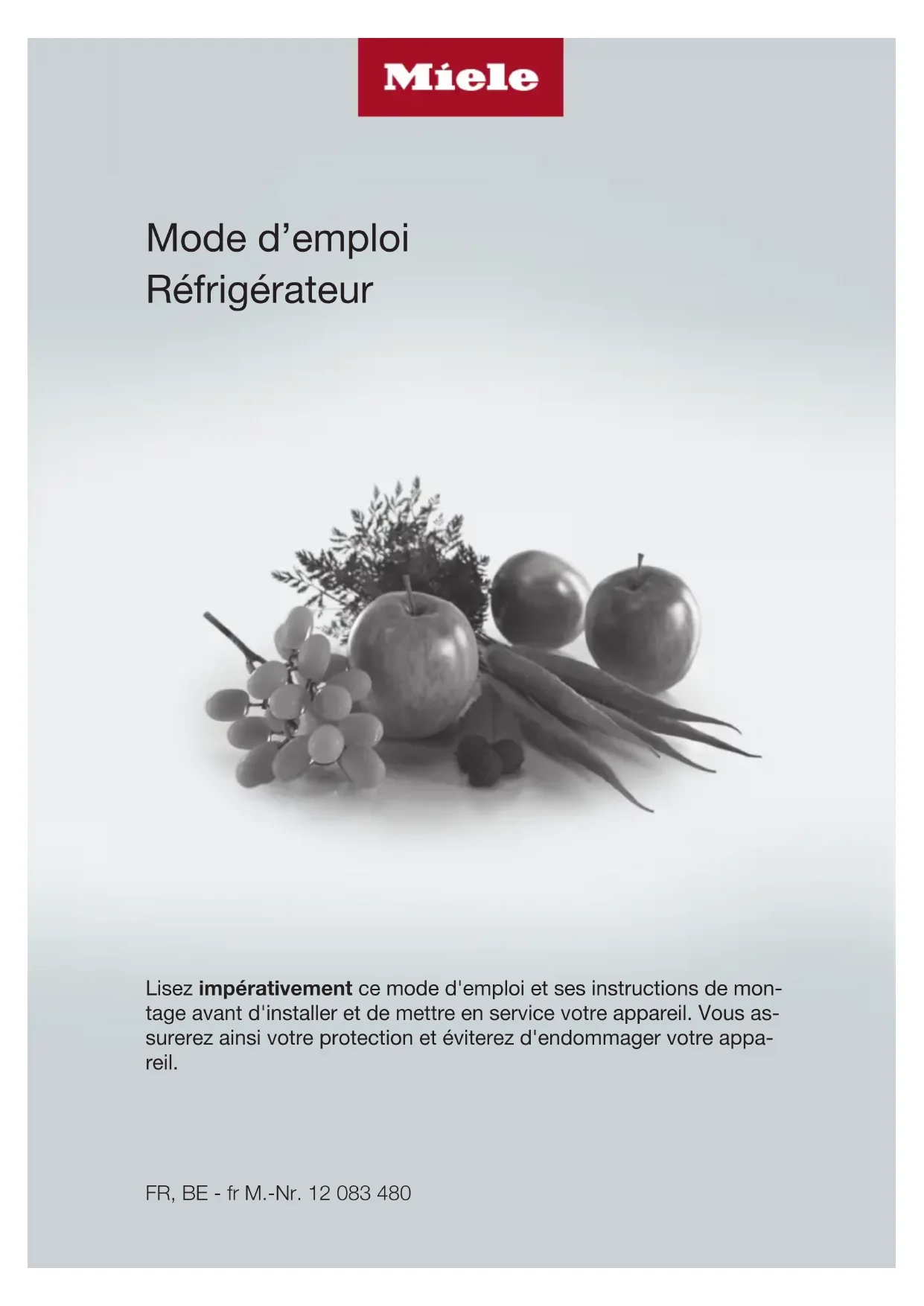 Mode d’emploi Réfrigérateur Lisez impérativement ce mode d'emploi et ses instructions de mon- tage avant d'installer et de mettre en service votre appareil. Vous as- surerez ainsi votre protection et éviterez d'endommager votre appa- reil. FR, BE - fr M.-Nr. 12 083 480Table des matières