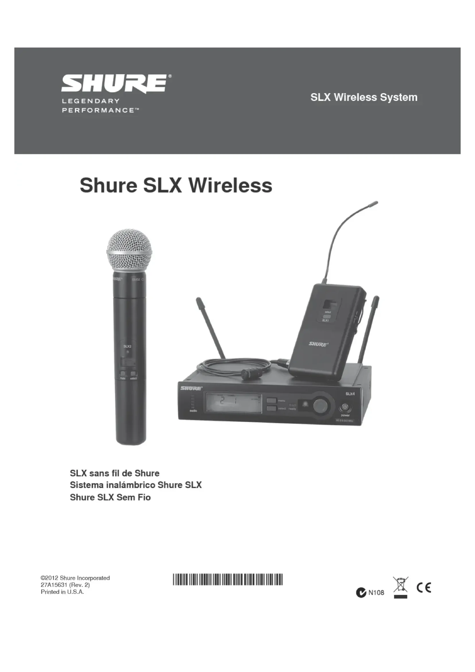 SLX Wireless - Microphone SHURE - Notice d'utilisation et mode d'emploi gratuit