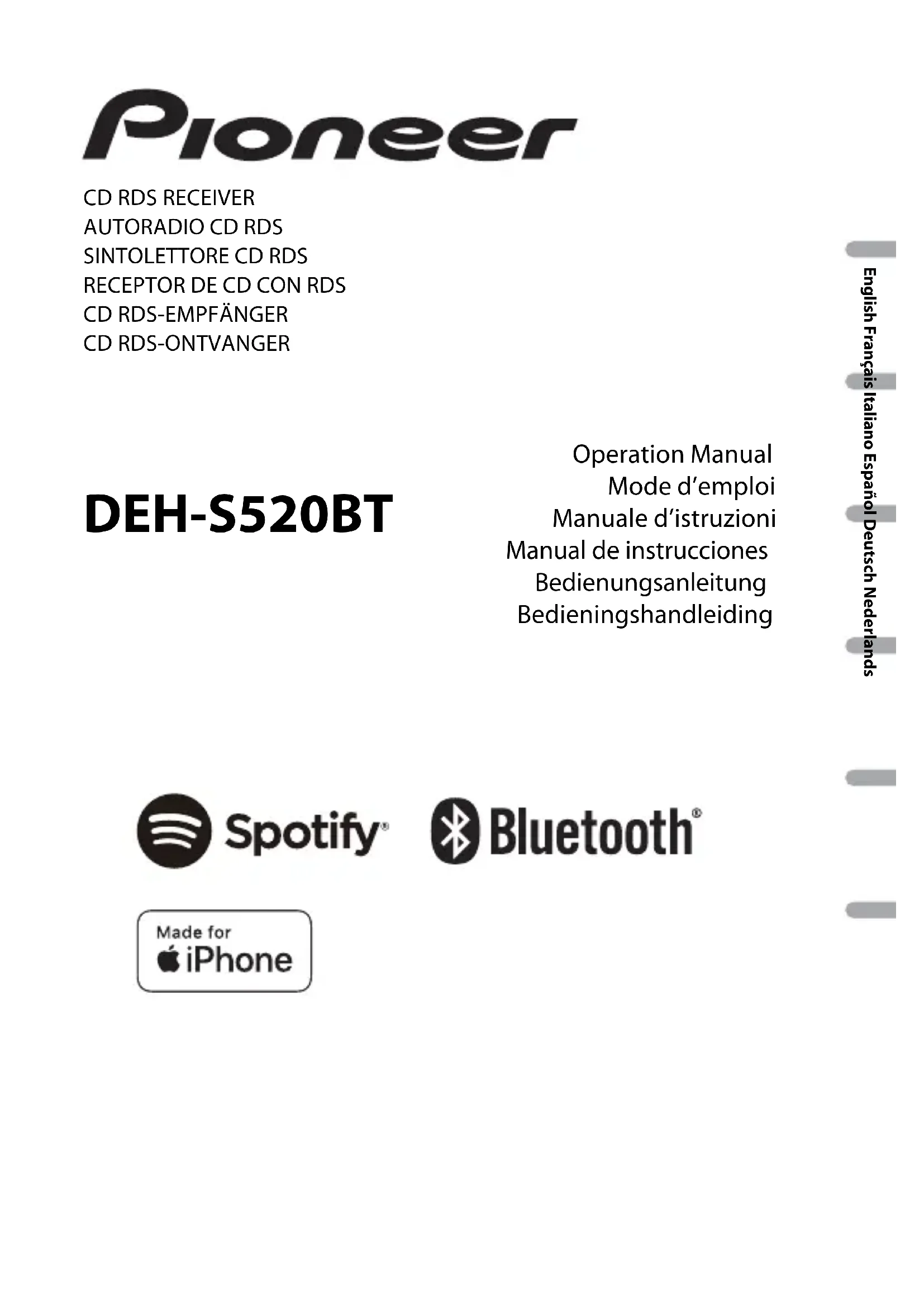 Retrouvez gratuitement la notice de l'appareil DEHS520BT PIONEER au format PDF.