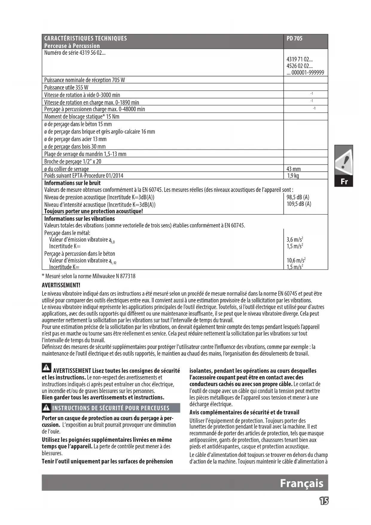 PD 705 - Perceuse MILWAUKEE - Notice d'utilisation et mode d'emploi gratuit