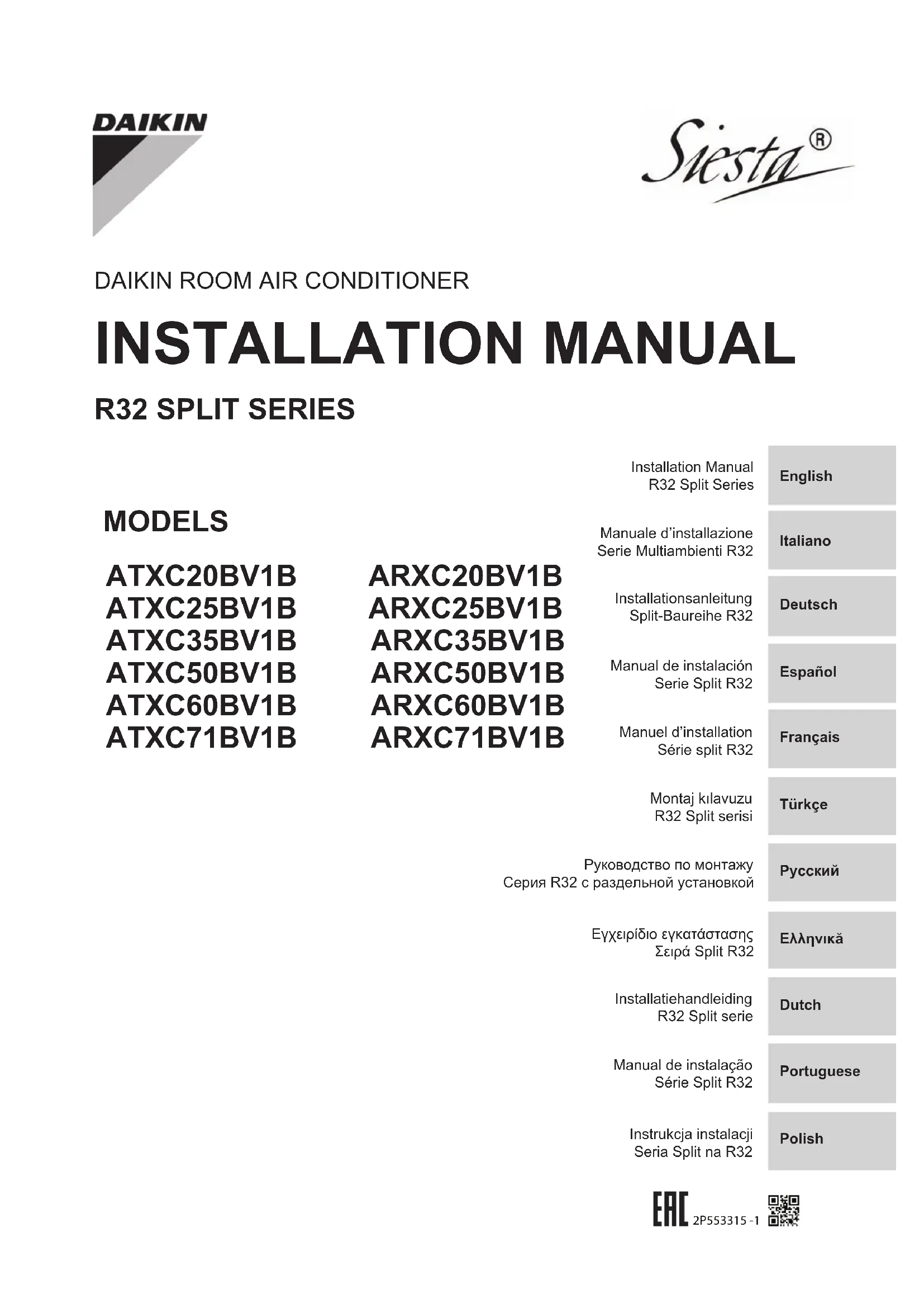 Manuel d’installation Série split R32 Français SOMMAIRE