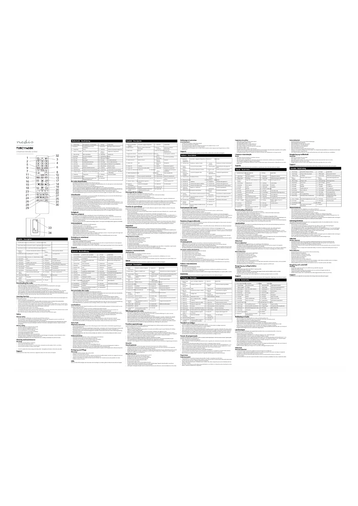 TVRC1140BK - Télécommande NEDIS - Notice d'utilisation et mode d'emploi gratuit