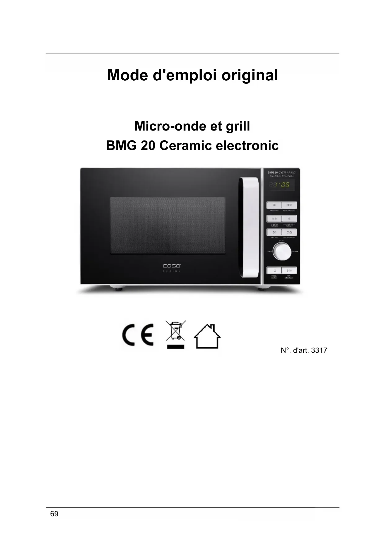 BMG 20 - Four à micro-ondes CASO - Notice d'utilisation et mode d'emploi gratuit
