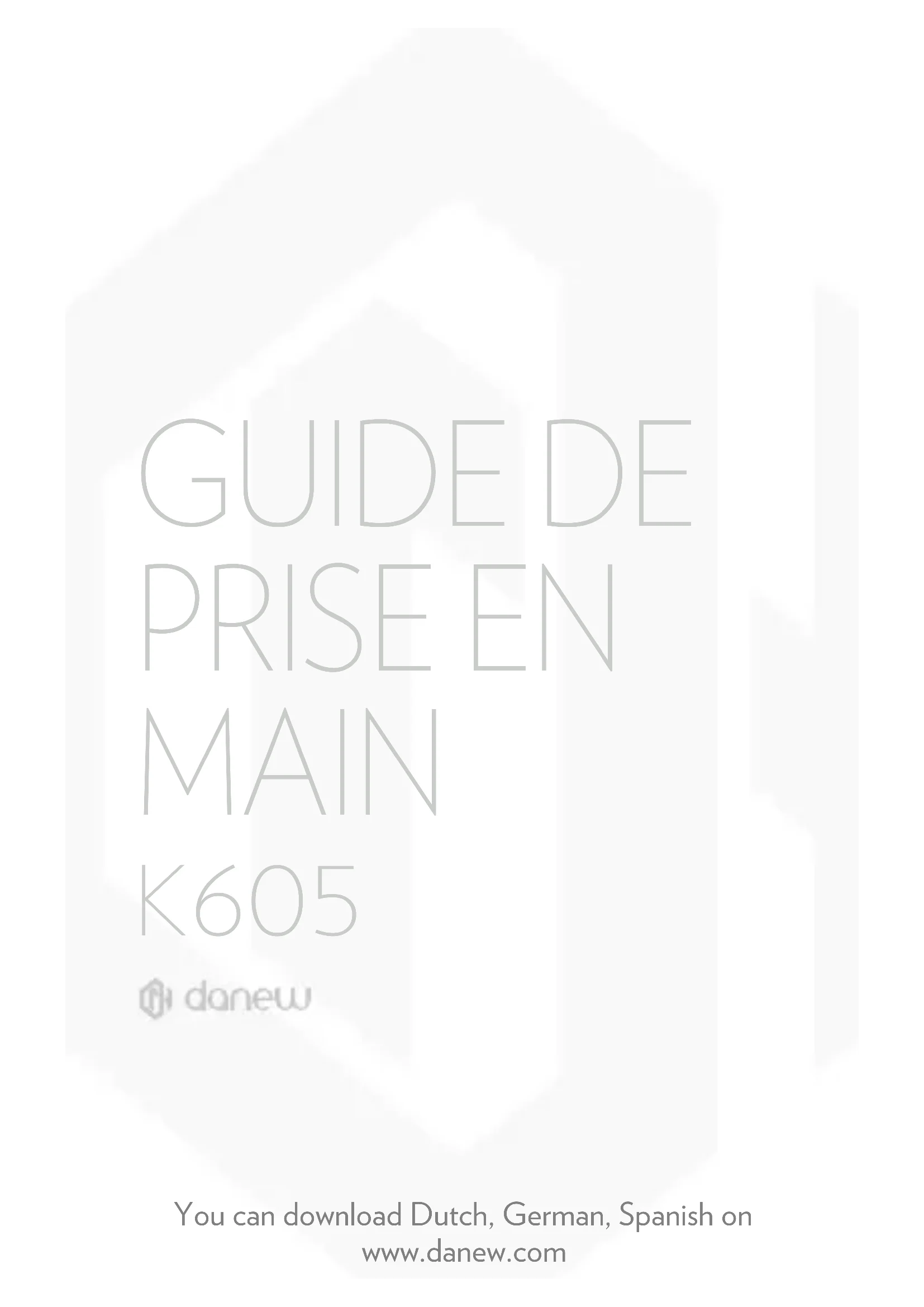 K605 GUIDE DE PRISE EN MAIN You can download Dutch, German, Spanish on www.danew.comNous vous remercions d’avoir choisi un produit Danew. Votre appareil a été conçu pour vous proposer la plus belle expérience vidéoludique sur smartphone. Avant d’utiliser votre produit, veuillez lire attentivement les instructions d’utilisation présentées dans ce manuel. Son objectif est de vous familiariser avec les caractéristiques techniques de votre appareil afin de faciliter son utilisation. NOTE : Toutes les informations décrites dans ce manuel et sur le packaging étaient exactes au moment de leur impression. Cependant, nous amélio- rons en permanence nos produits par le biais de mises à jour logicielles, par conséquent il est possible que ce manuel ainsi que le packaging ne pré- sentent pas la totalité des fonctions présentes dans votre produit. Photos et illustrations non contractuelles.3 Sommaire Démarrage Appareil photo Applicaons Google Gesonnaire d’appareils et de données Informaon de Sécurité Premier pas Geson des réseaux Téléphone Messages