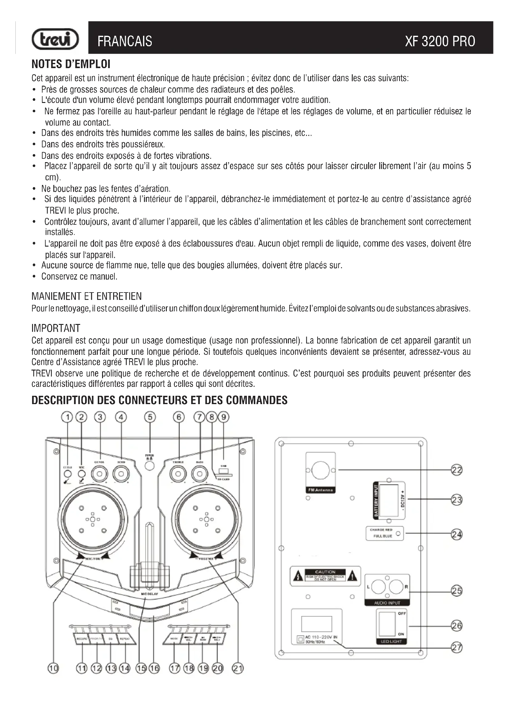 XF 3200 PRO - Station d'acceuil Trevi - Notice d'utilisation et mode d'emploi gratuit