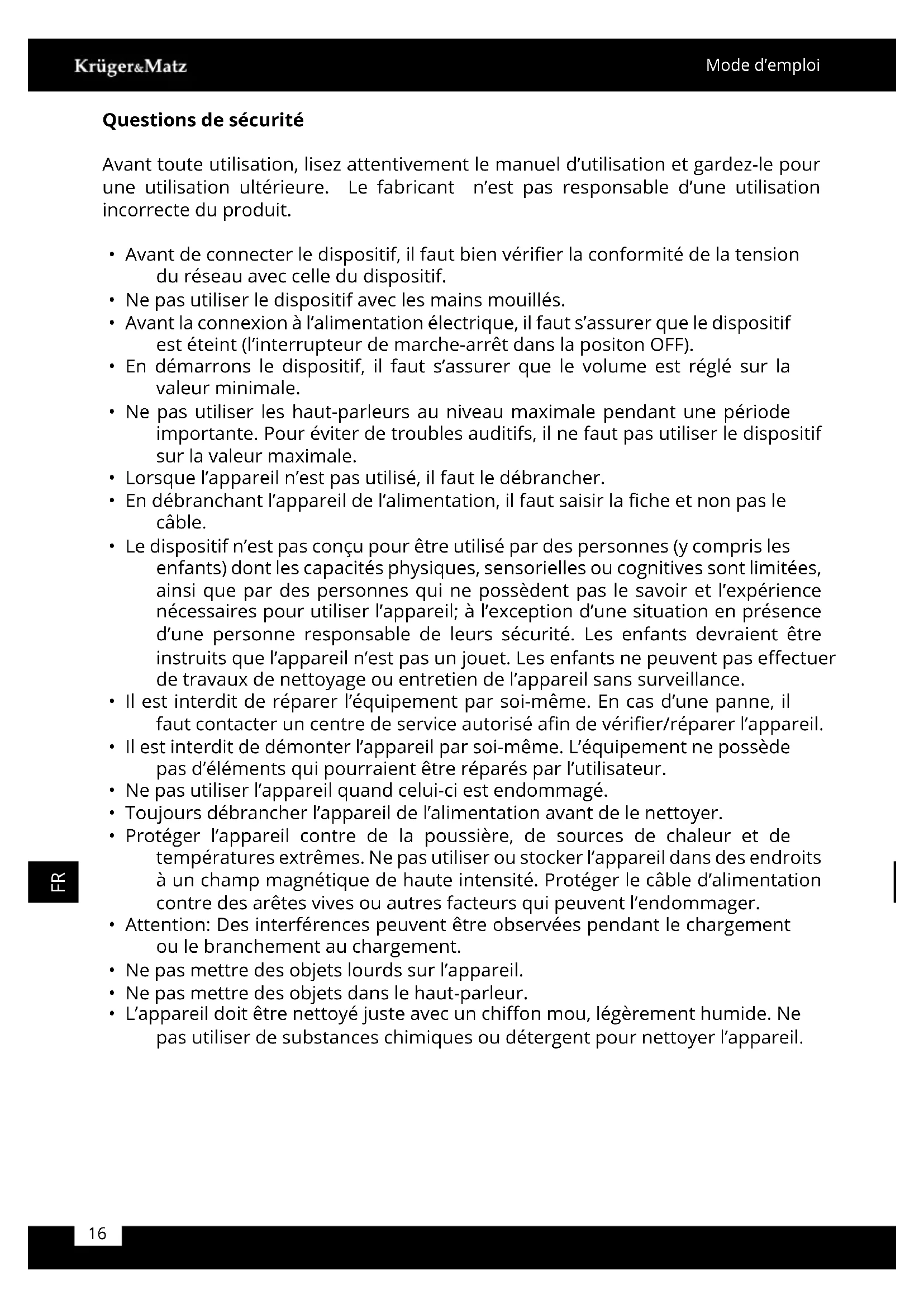 KM0530 - Haut-parleur Krüger&Matz - Notice d'utilisation et mode d'emploi gratuit