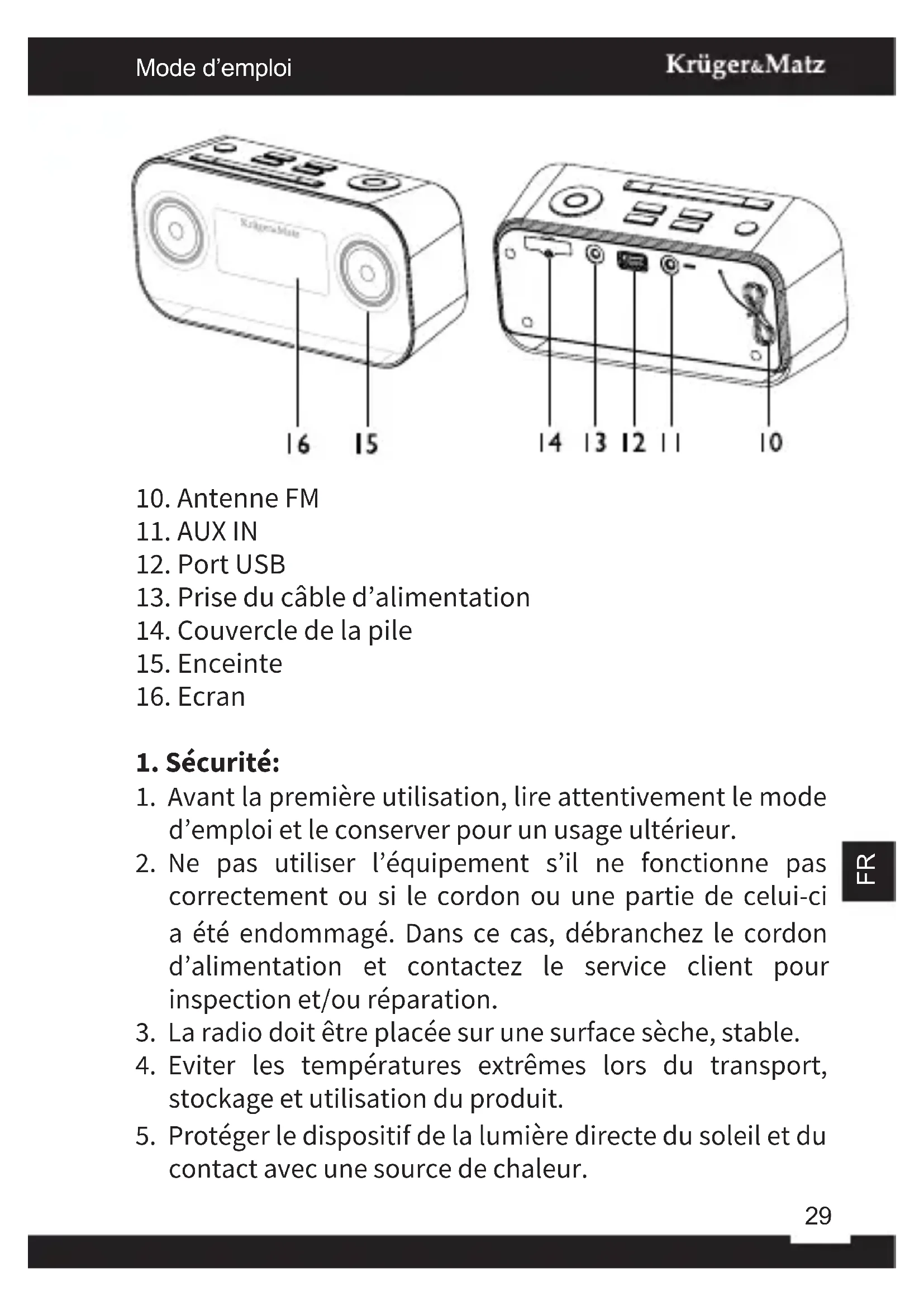 KM1150 - Radio Krüger&Matz - Notice d'utilisation et mode d'emploi gratuit