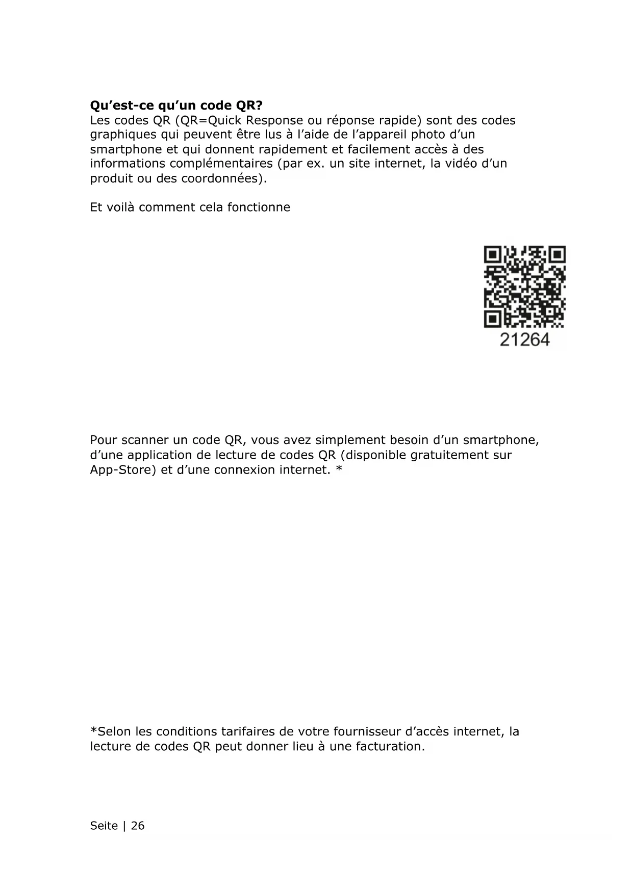 Pour scanner un code QR, vous avez simplement besoin d’un smartphone, d’une application de lecture de codes QR (disponible gratuitement sur App-Store) et d’une connexion internet. *