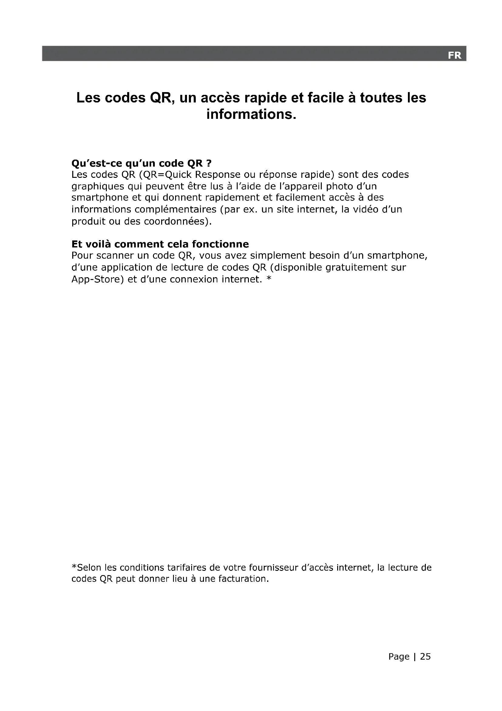 *Selon les conditions tarifaires de votre fournisseur d’accès internet, la lecture de codes QR peut donner lieu à une facturation.Page | 26