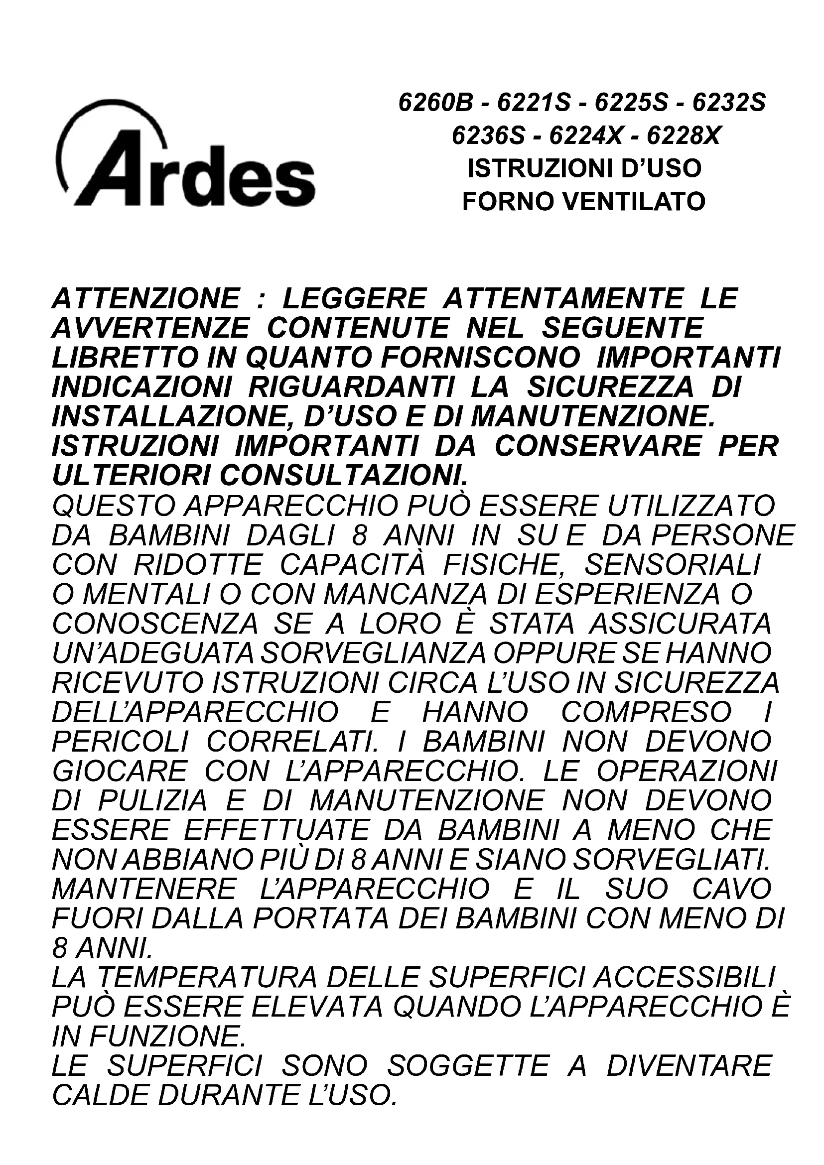 AR6228X - Four ARDES - Notice d'utilisation et mode d'emploi gratuit