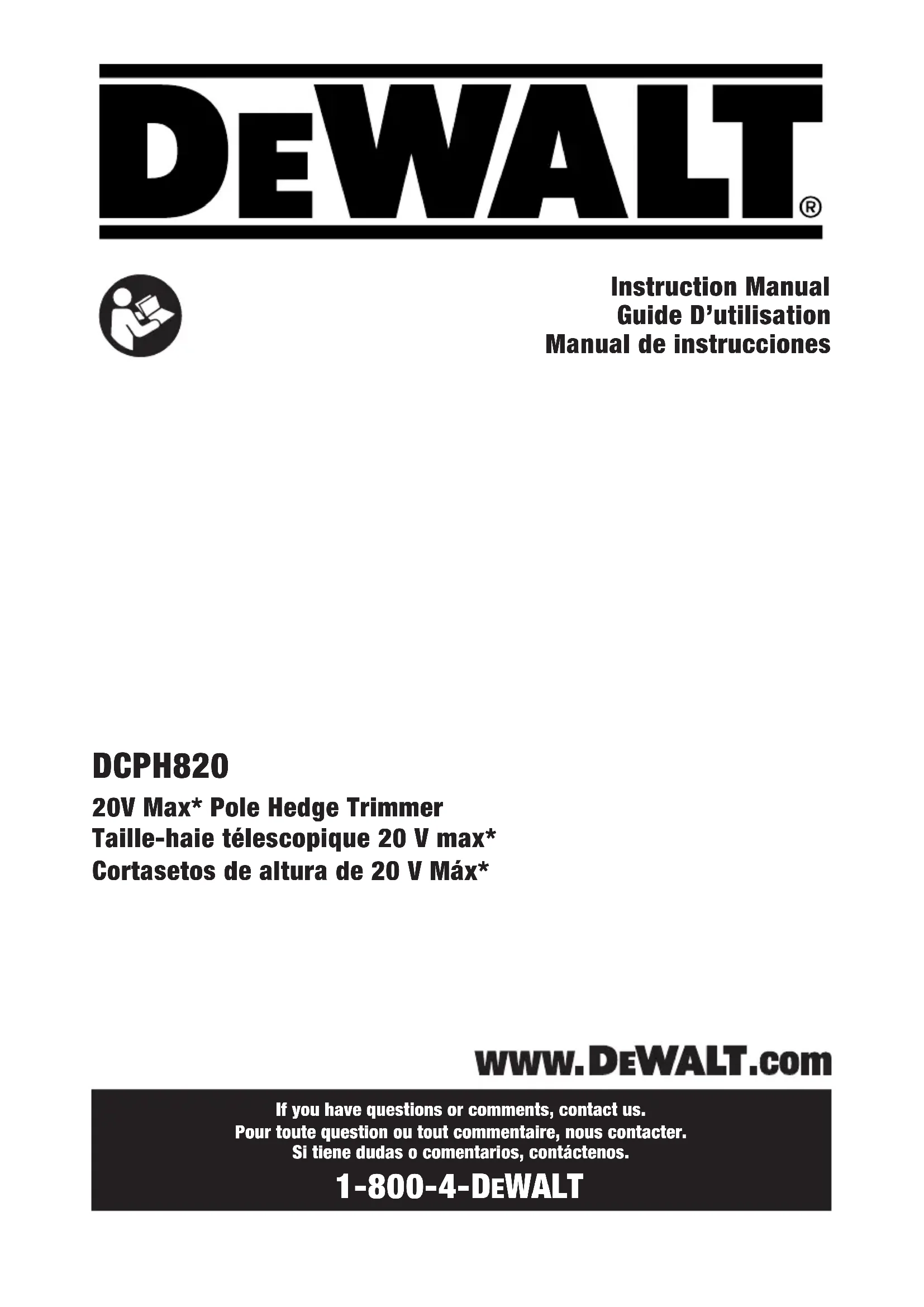 DCPH820 - Taille-haies DEWALT - Notice d'utilisation et mode d'emploi gratuit