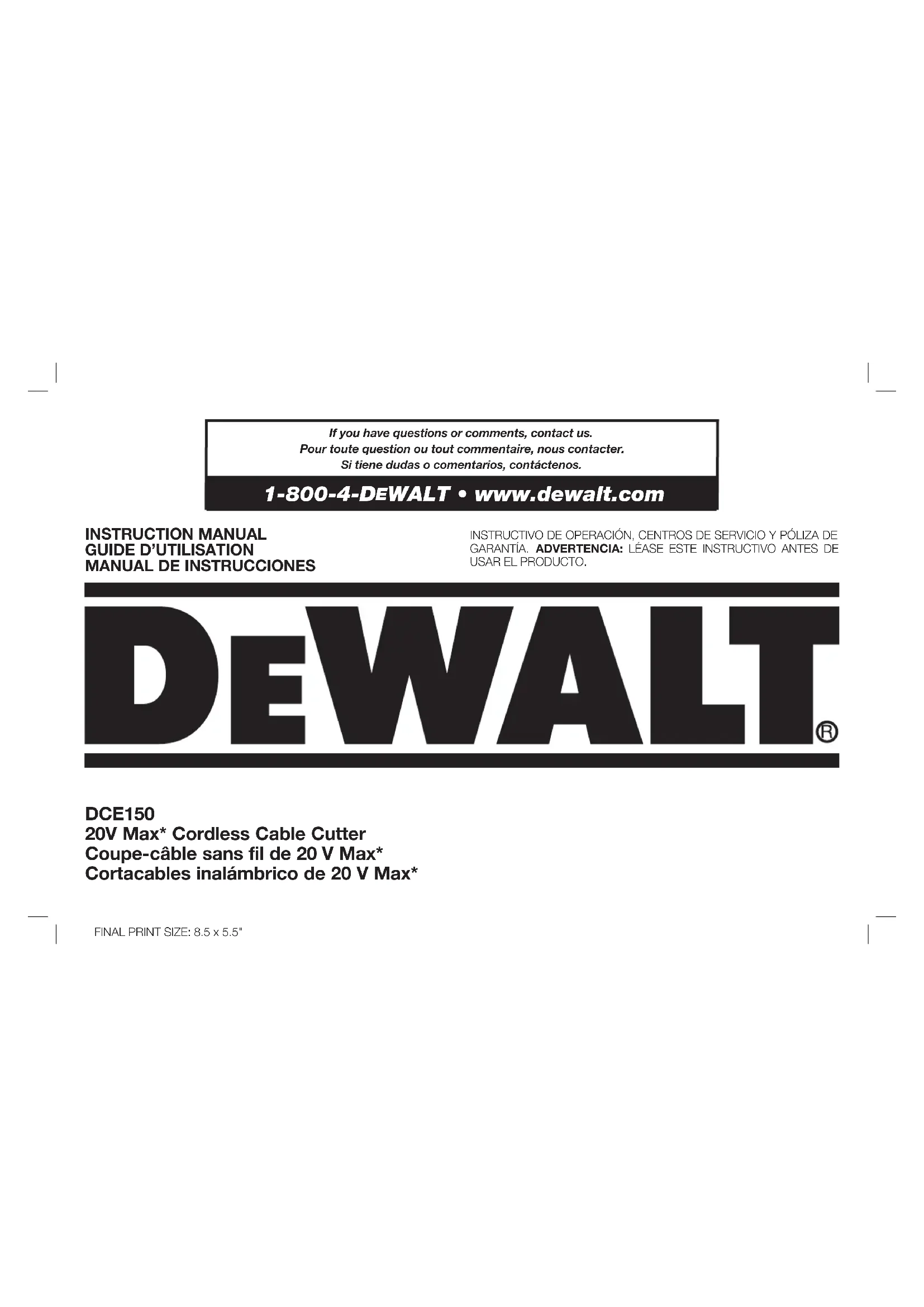 Téléchargez la notice de votre Scie au format PDF gratuitement ! Retrouvez votre notice DCE150 - DEWALT et reprennez votre appareil électronique en main. Sur cette page sont publiés tous les documents nécessaires à l'utilisation de votre appareil DCE150 de la marque DEWALT.
