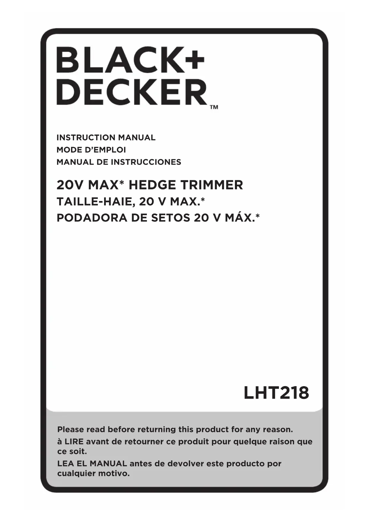 LHT218 - Taille-haies BLACK & DECKER - Notice d'utilisation et mode d'emploi gratuit