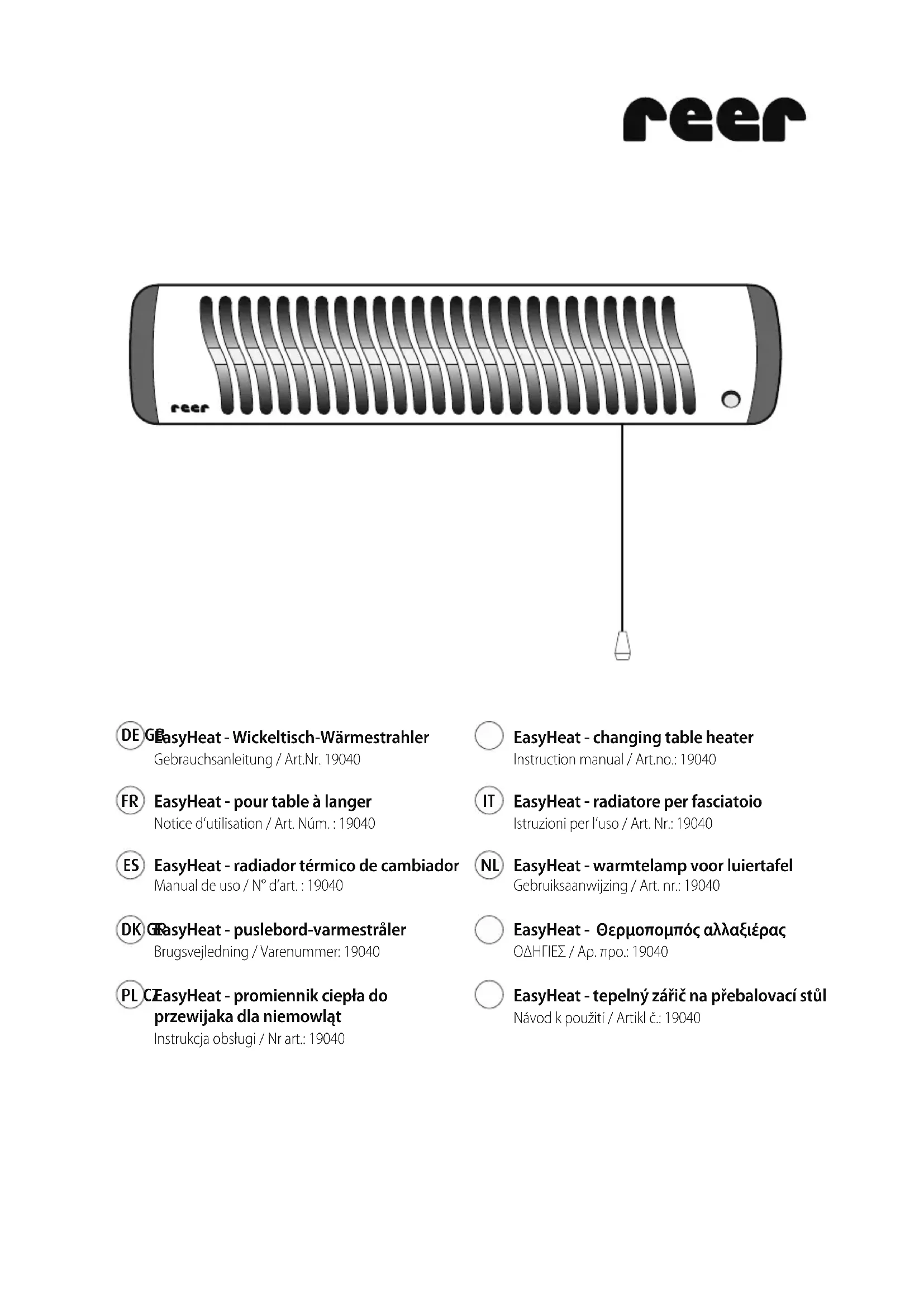 Retrouvez gratuitement la notice de l'appareil EasyHeat 19040 Reer au format PDF.