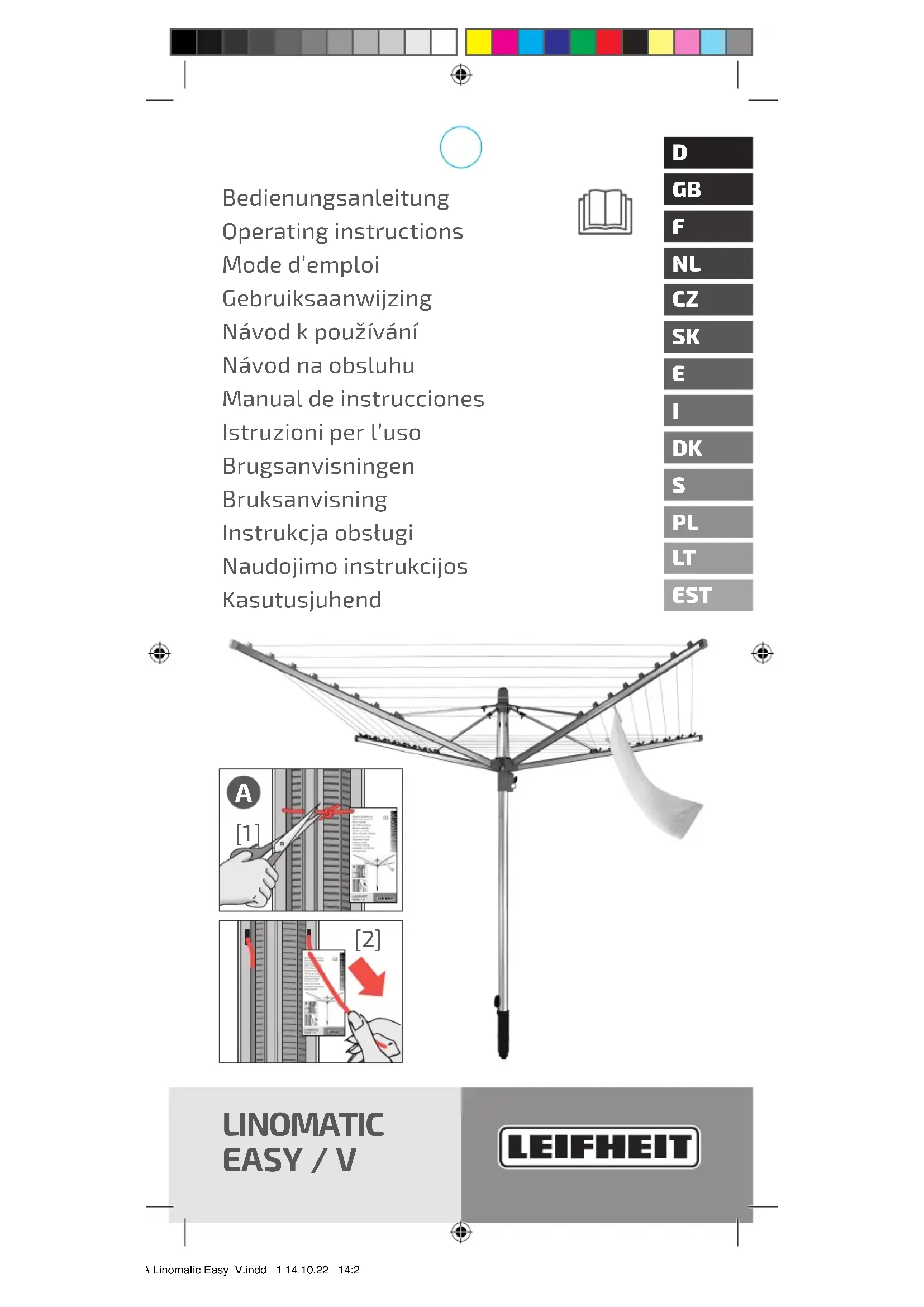 tion fournies ; En cas de garantie, Leifheit vous accorde à sa discrétion absolue la réparation des pièces défectueuses ou l’échange du produit. *BA Linomatic Easy_V.indd 15 14.10.22 14:26Si une réparation ne peut pas être eectuée et un produit identique est en rupture de stock à des ns d’échange, vous obtiendrez éventuellement un produit de remplacement d’une valeur comparable. En cas de garantie, le remboursement du prix d‘achat est impossible. La garantie ne couvre pas non plus les demandes de dommages-intérêts. Pour le recours à la garantie, veuillez faire parvenir le produit défectueux et le justicatif d‘achat (copie) au commerçant auprès duquel le produit a été acheté. Cette garantie est valable dans le monde entier. Vos droits statutaires, en particulier les droits de garantie, restent applicables et ne sont pas limités par cette garantie. Nederlands Beste Leifheit-Linomatic-klant, gefeliciteerd met uw keuze voor een Leifheit droogmolen van topkwaliteit. Om de hoogwaardige kwaliteit te waarborgen, wordt elke Linomatic bij de productie getest en voorzien van een controlenummer. Dit nummer staat op de paal, op een hoogte van circa 50 cm boven de grond. Het beste kunt u het controle- nummer meteen hier invoeren. Om lang plezier te hebben van de hoogwaardige kwaliteit van uw Linomatic, is het belangrijk de onderhoudsaanwijzingen goed in acht te nemen. De gebruiks- aanwijzing zorgvuldig doorlezen en goed bewaren, samen met het aankoopbewijs. Controlenummer