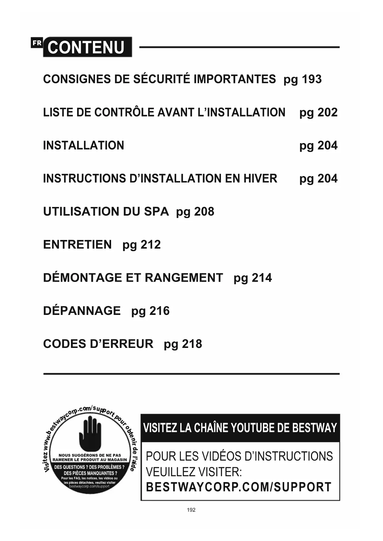 Si vous avez besoin d’aide, veuillez visiter la section assistance de notre site web, www.bestwaycorp.com