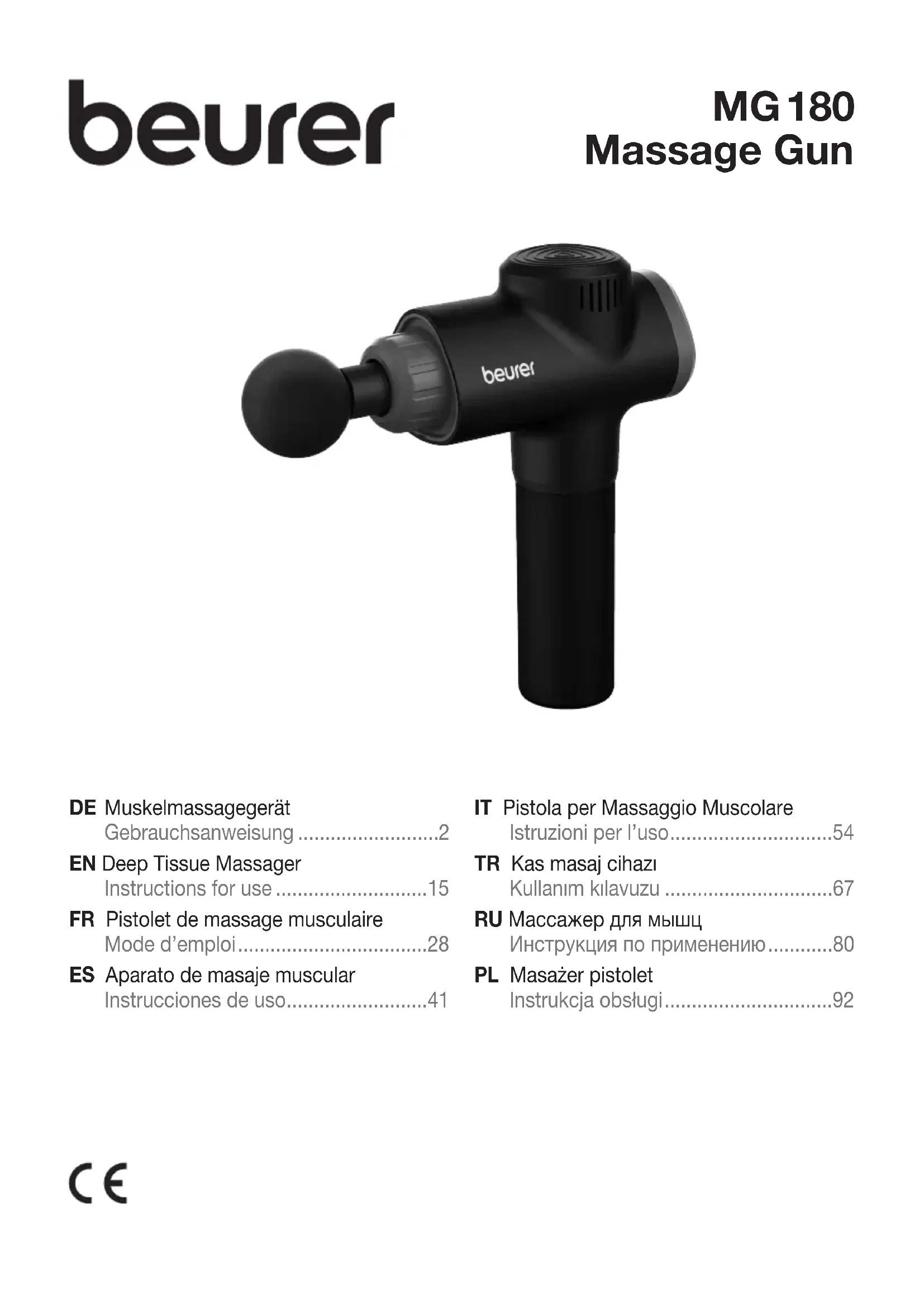 MG 180 - Appareil de massage BEURER - Notice d'utilisation et mode d'emploi gratuit