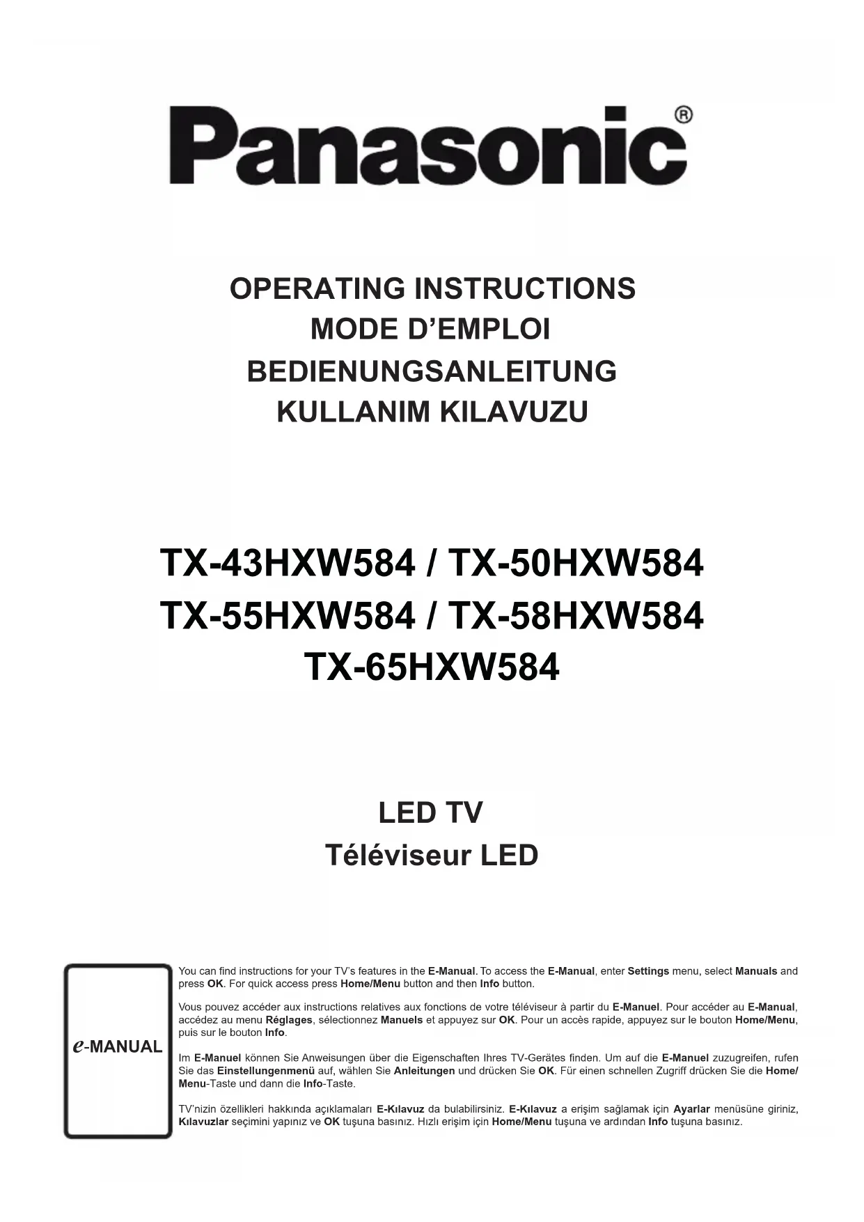 Retrouvez gratuitement la notice de l'appareil TX43HXW584 PANASONIC au format PDF.