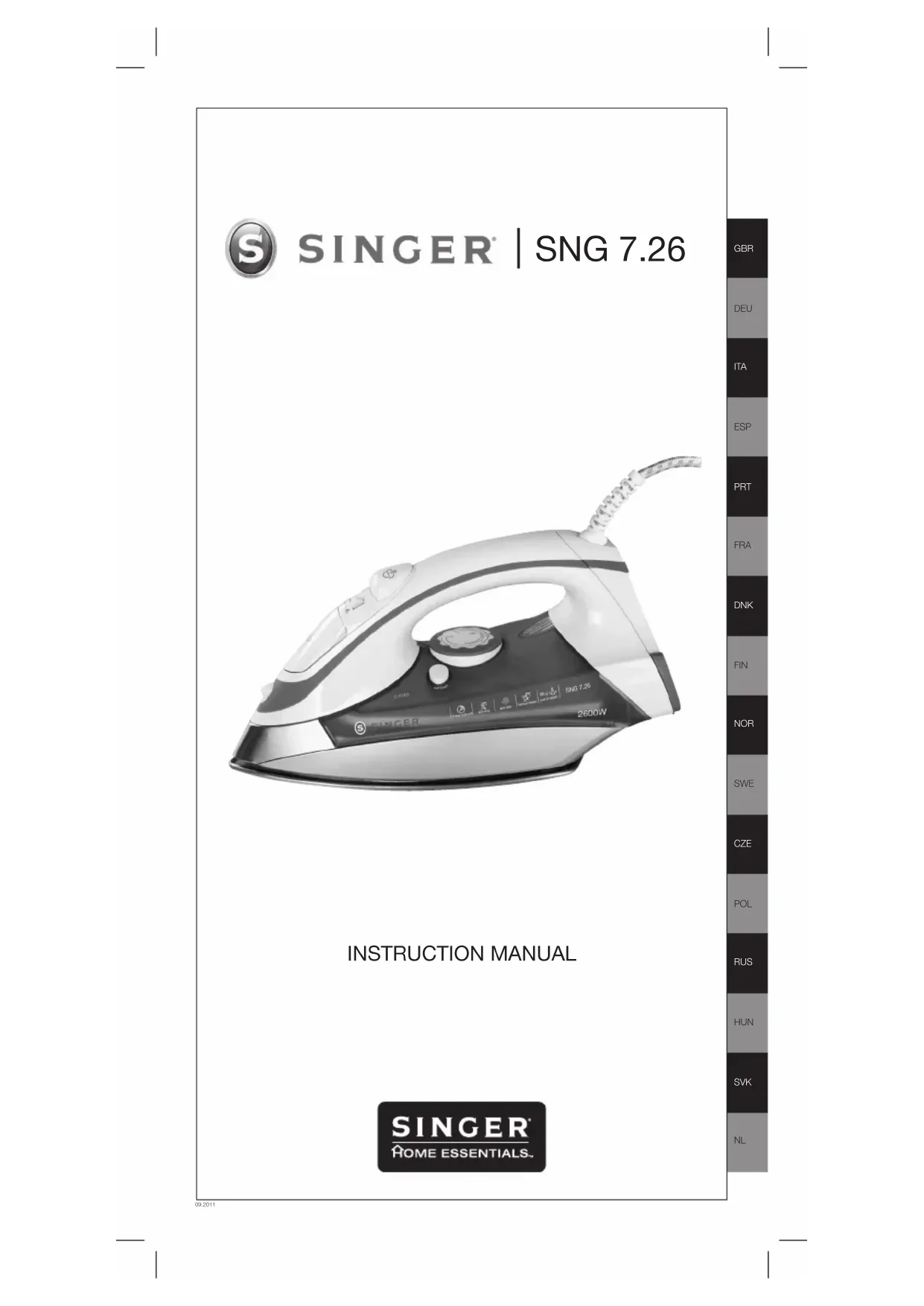 SNG 7.26 - Fer à repasser SINGER - Notice d'utilisation et mode d'emploi gratuit