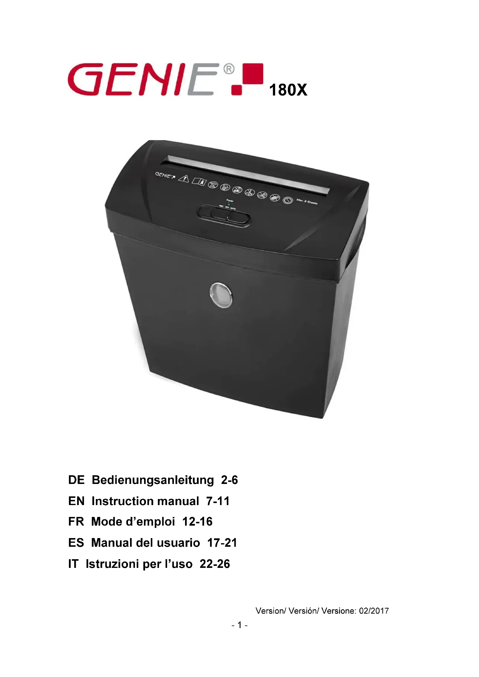 180X - Destructeur de document Genie - Notice d'utilisation et mode d'emploi gratuit