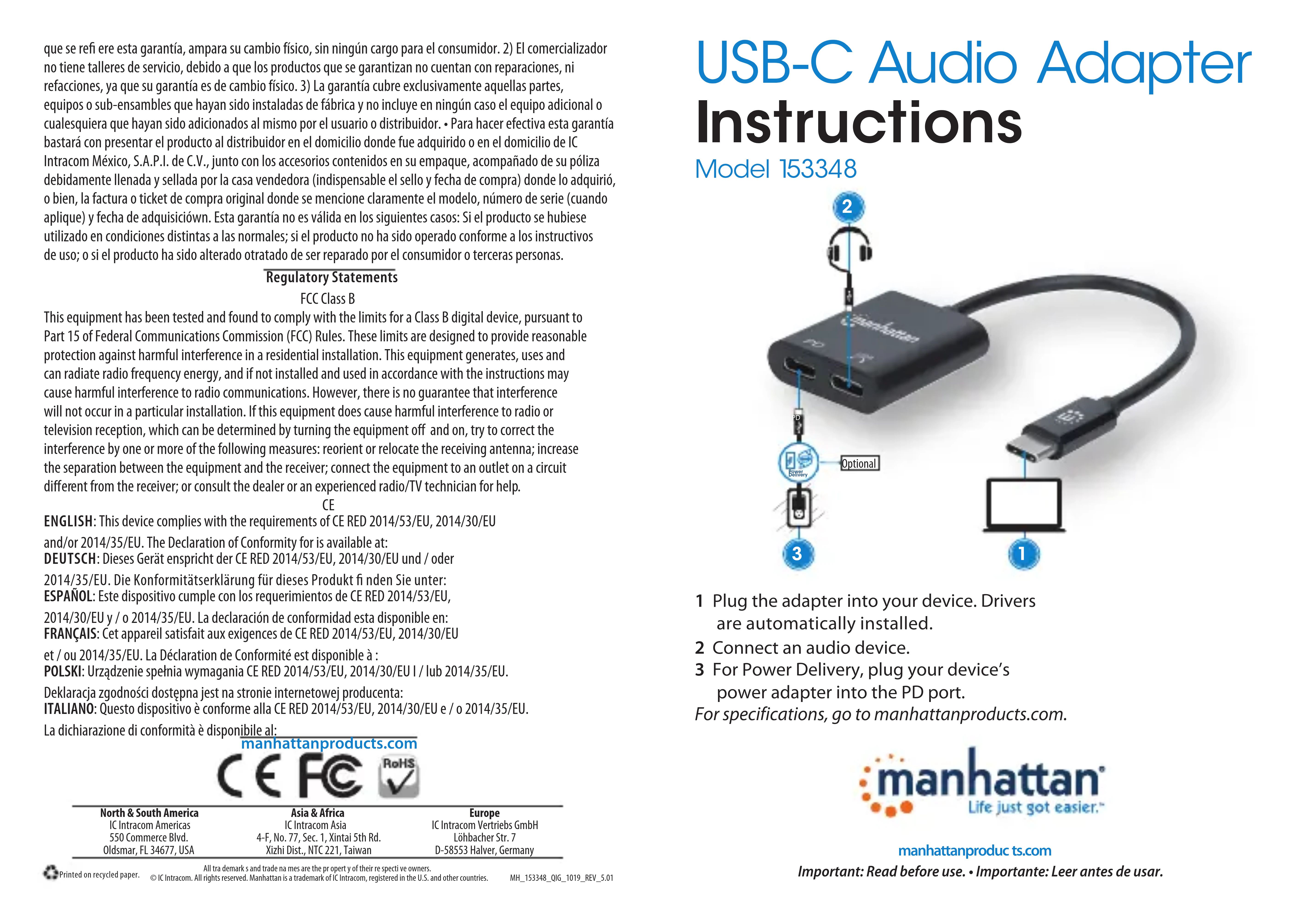 Retrouvez gratuitement la notice de l'appareil 153348 MANHATTAN au format PDF.