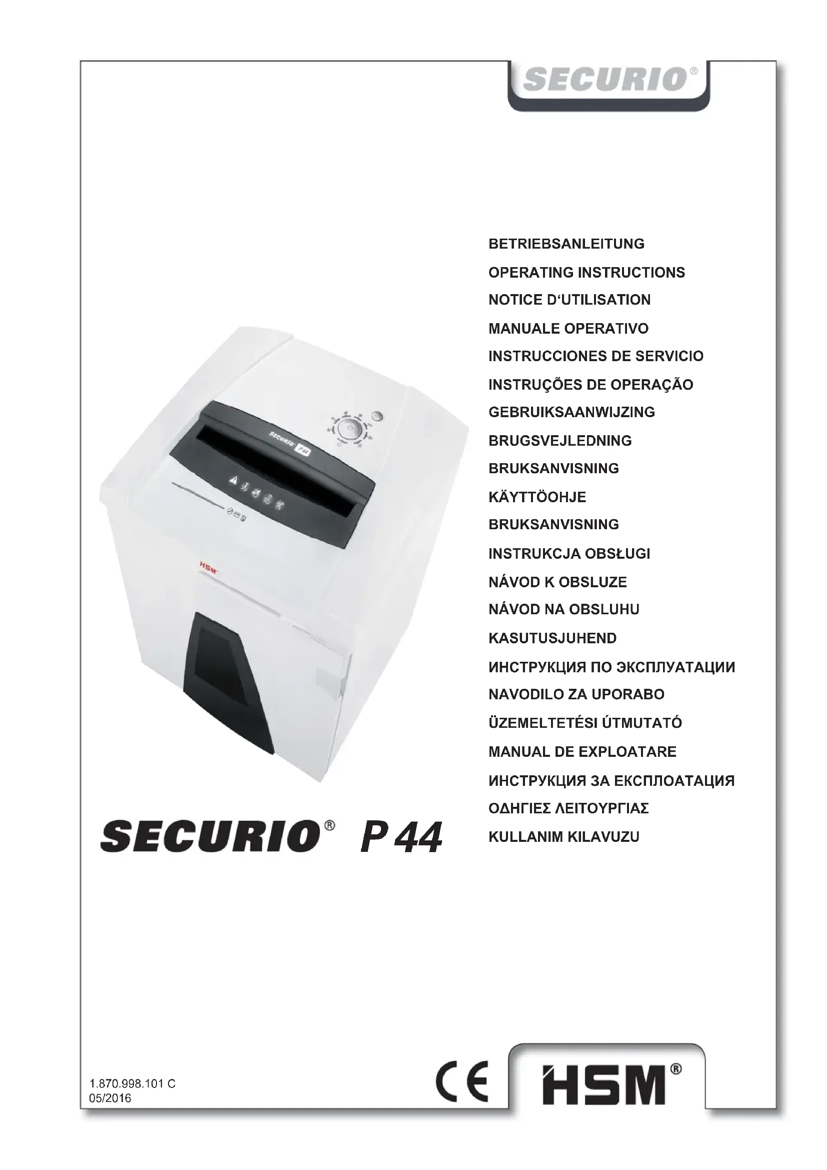 Securio P44i - Destructeur de document HSM - Notice d'utilisation et mode d'emploi gratuit
