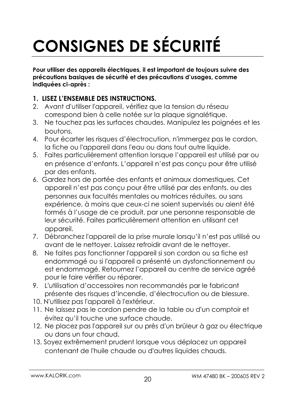 FOIRE AUX QUESTIONS - WM 47480 BK KALORIK