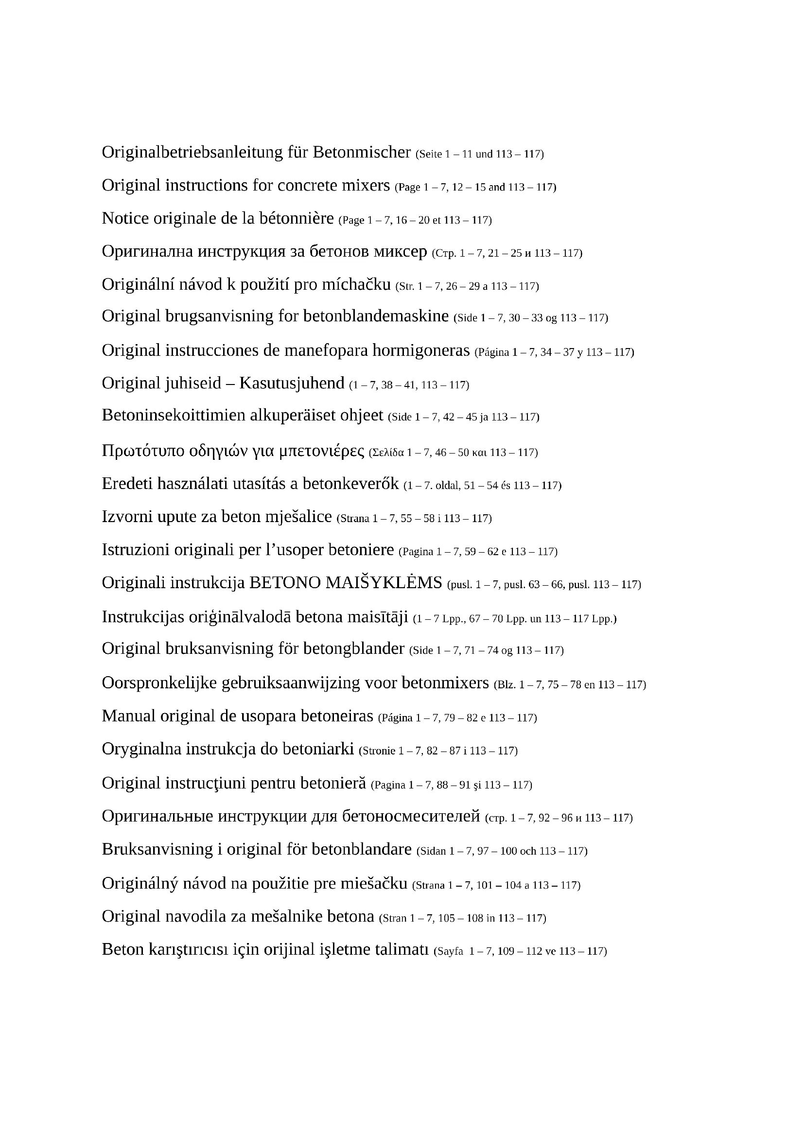 Notice originale de la bétonnière (Page 1 – 7, 16 – 20 et 113 – 117)