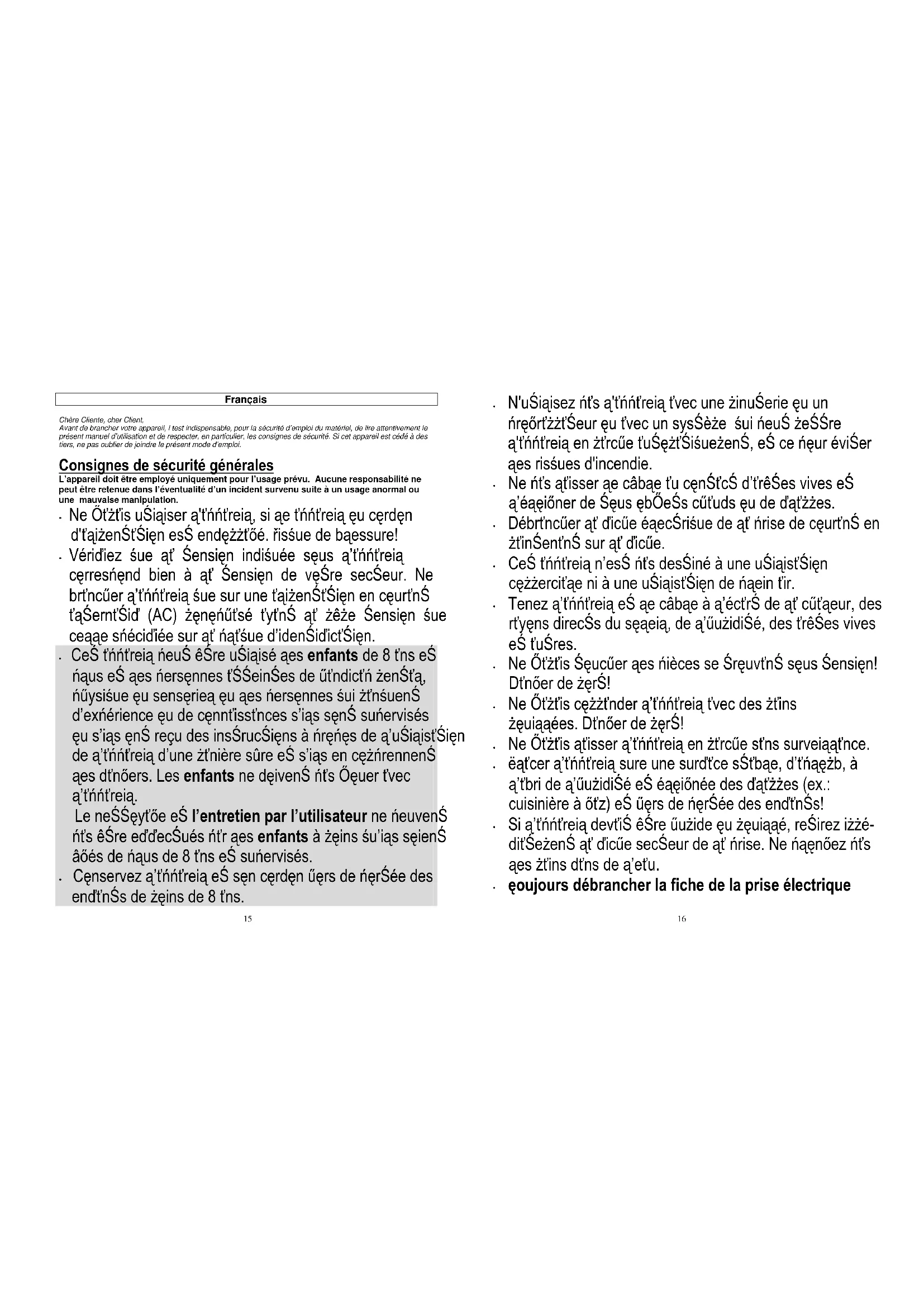 Chère Cliente, cher Client, Avant de brancher votre appareil, i test indispensable, pour la sécurité d’emploi du matériel, de lire attentivement le présent manuel d’utilisation et de respecter, en particulier, les consignes de sécurité. Si cet appareil est cédé à des tiers, ne pas oublier de joindre le présent mode d’emploi. Consignes de sécurité générales L’appareil doit être employé uniquement pour l’usage prévu. Aucune responsabilité ne peut être retenue dans l’éventualité d’un incident survenu suite à un usage anormal ou une mauvaise manipulation.
