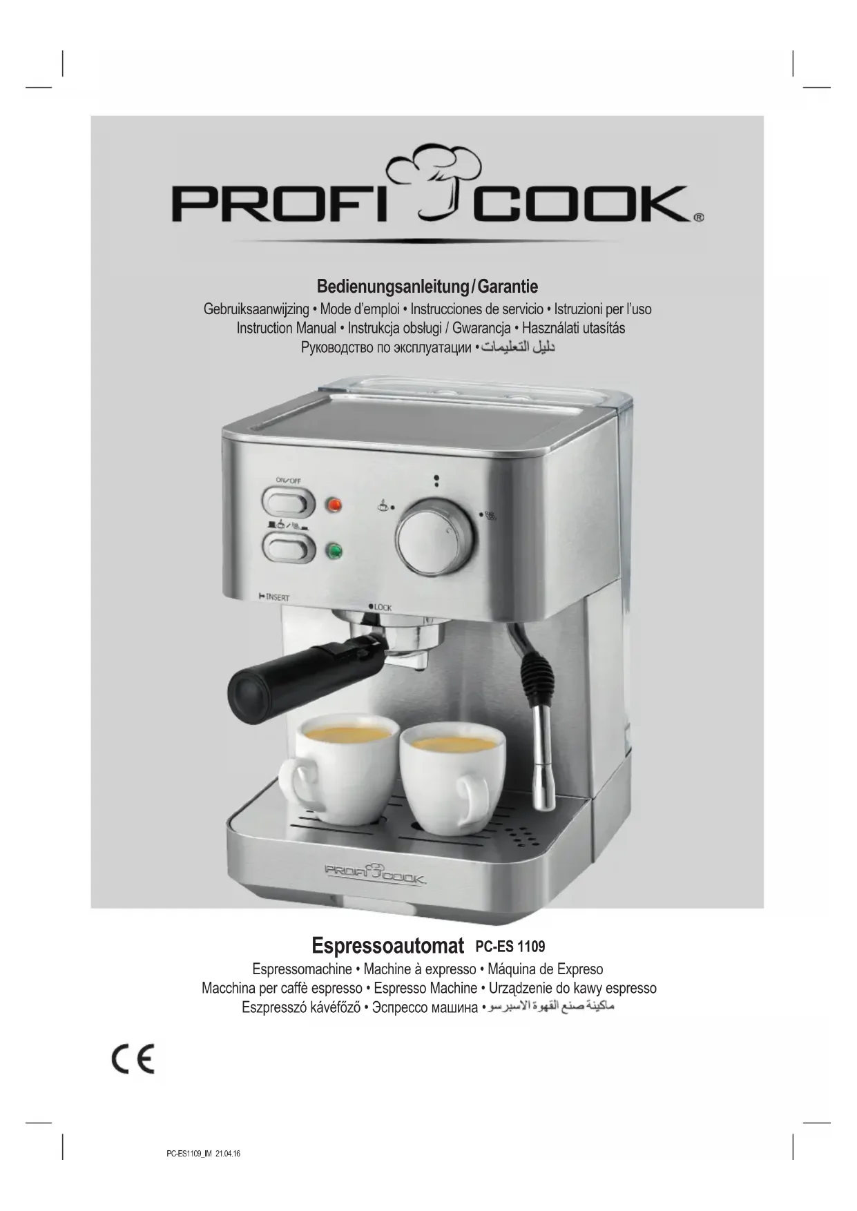 PCES 1109 - Machine à café PROFICOOK - Notice d'utilisation et mode d'emploi gratuit