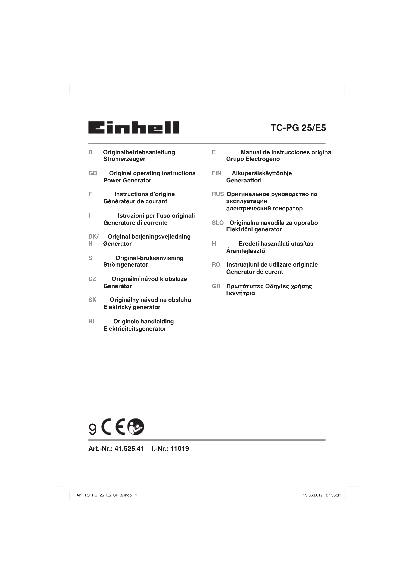 TCPG 25E2 - Générateur EINHELL - Notice d'utilisation et mode d'emploi gratuit
