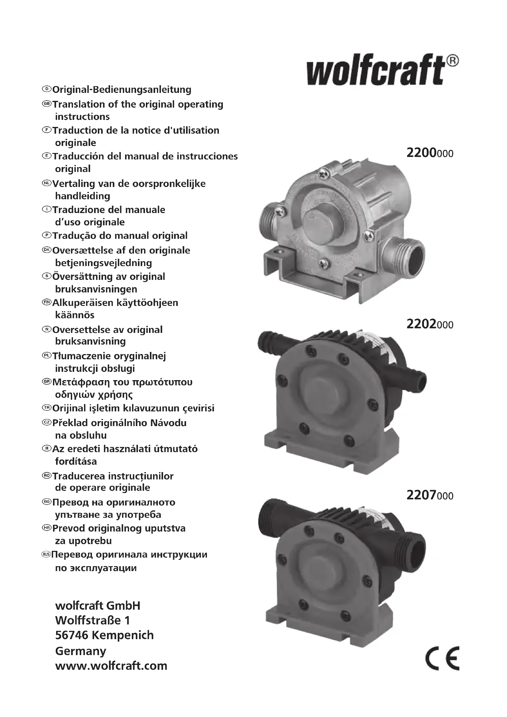 2207000 - Pompe à eau WOLFCRAFT - Notice d'utilisation et mode d'emploi gratuit