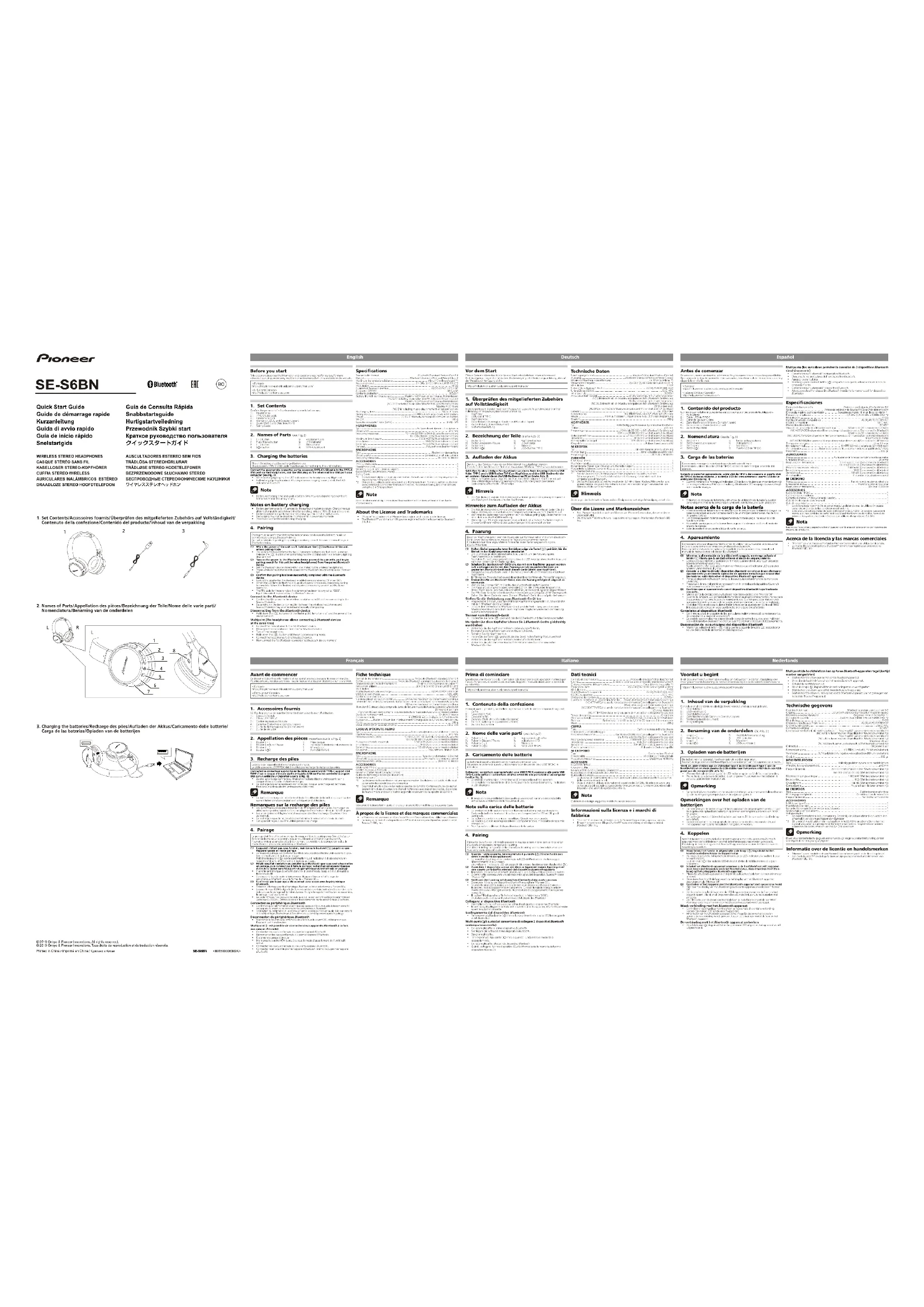 SES6BN - Casque PIONEER - Notice d'utilisation et mode d'emploi gratuit