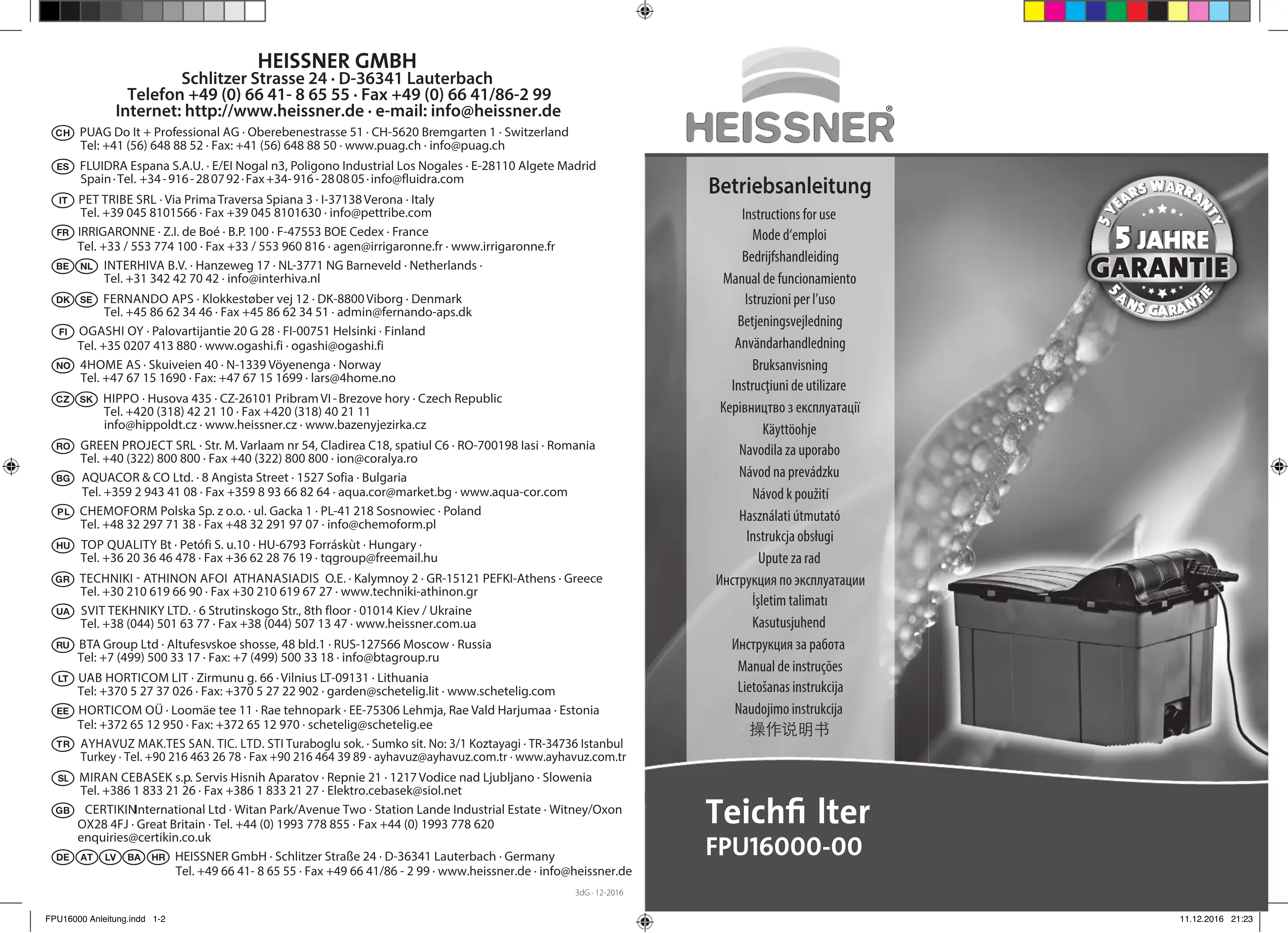 Retrouvez gratuitement la notice de l'appareil FPU1600000 Heissner au format PDF.