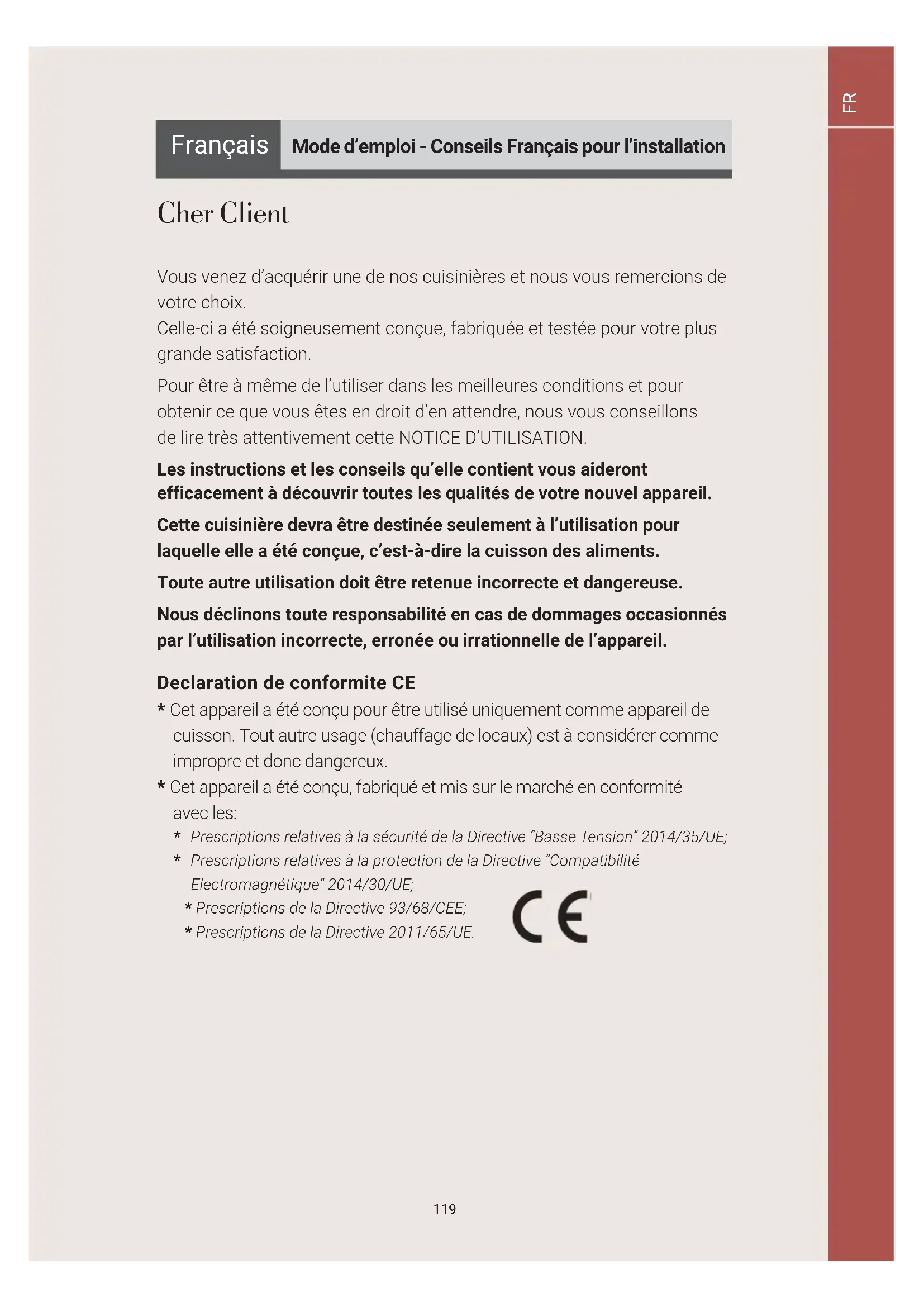 Vous venez d’acquérir une de nos cuisinières et nous vous remercions de votre choix.