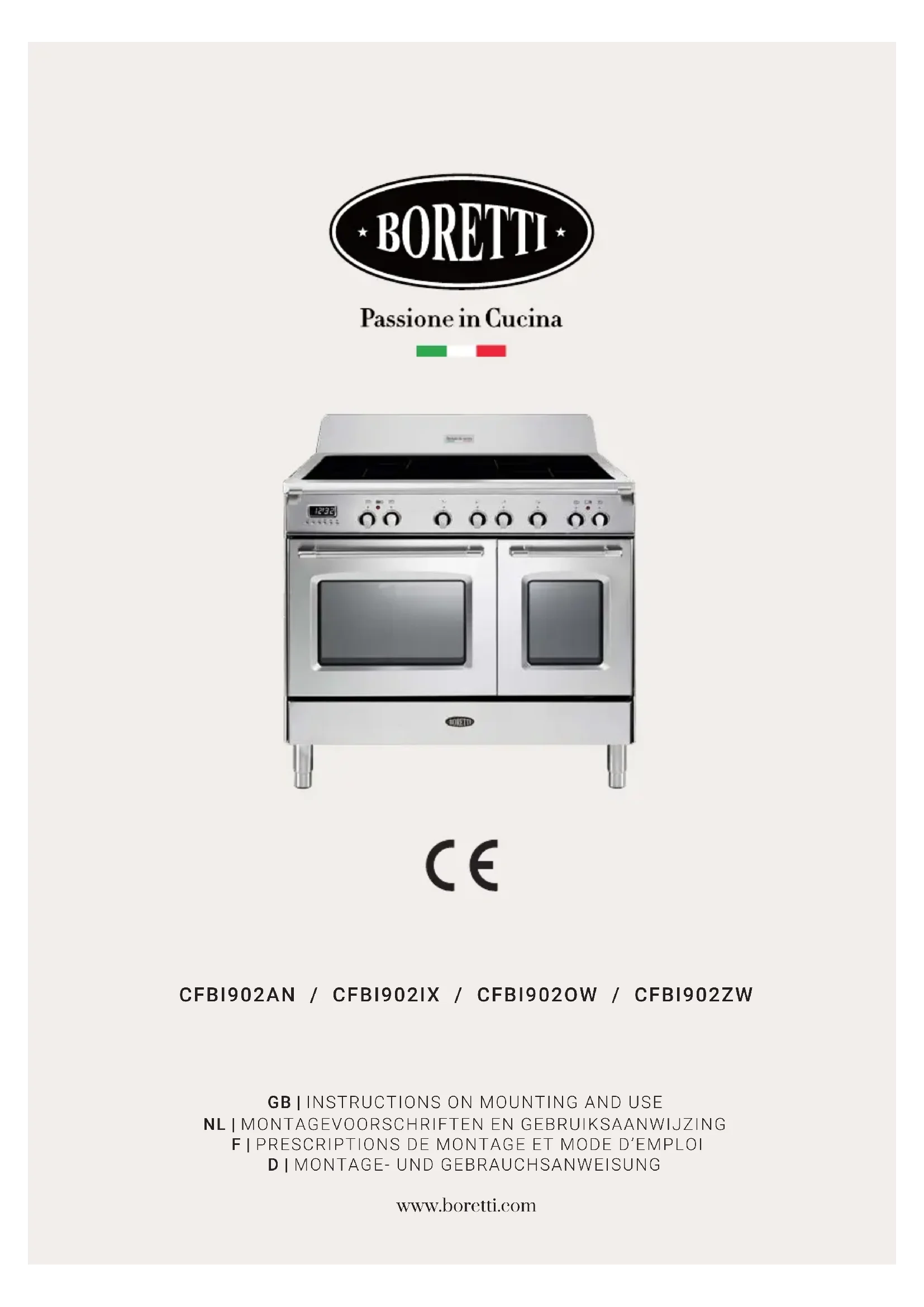 CFBI902IX - Cuisinière BORETTI - Notice d'utilisation et mode d'emploi gratuit